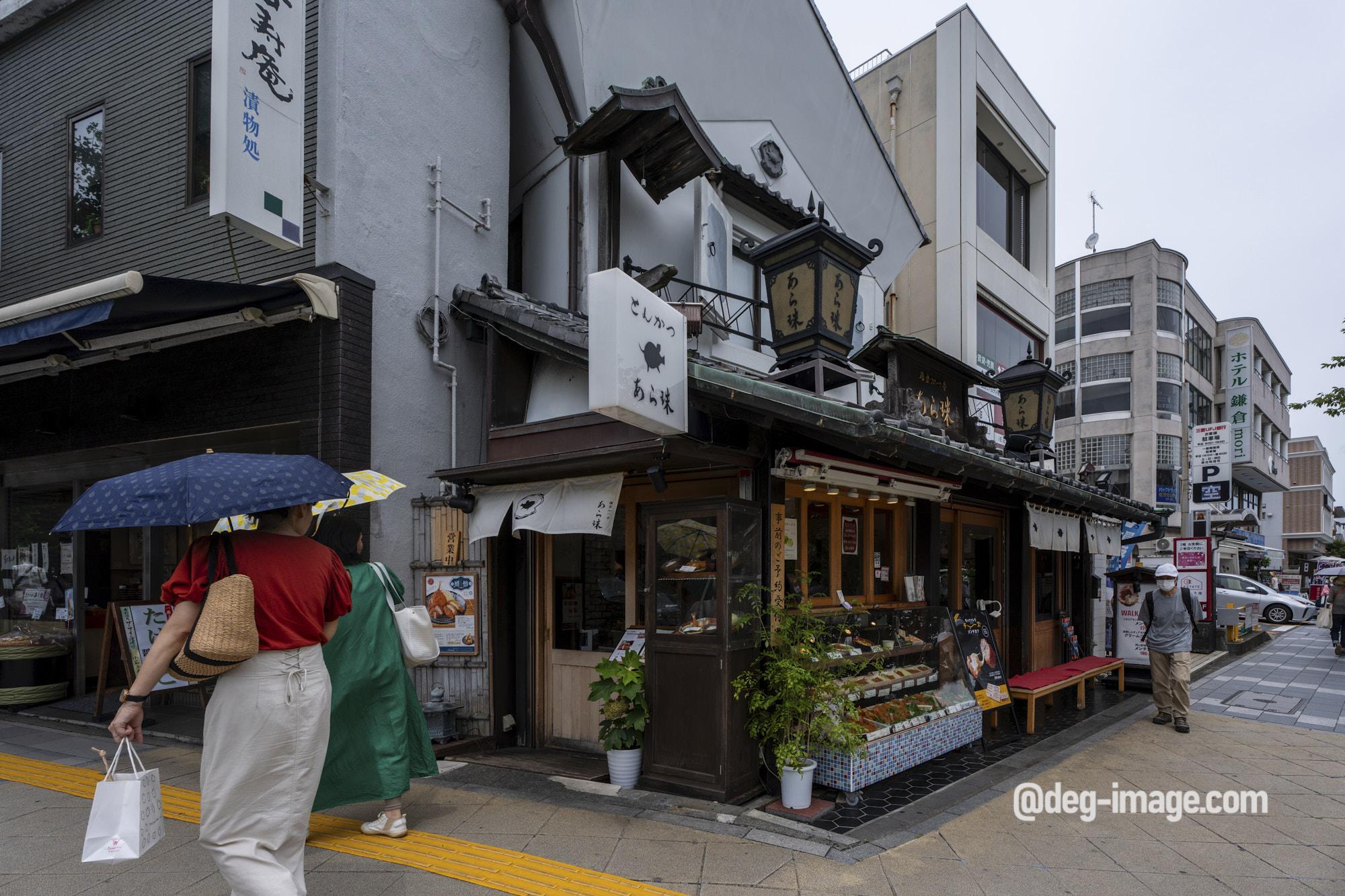 若宮大路「鎌倉駅入口」交差点にあるとんかつ「あら珠」の角を左に。