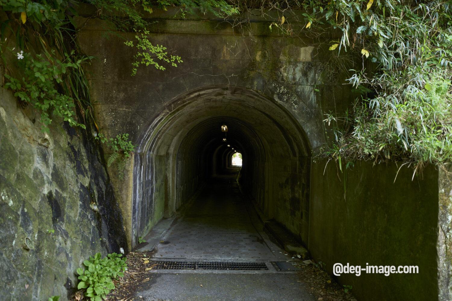 坂道を登りきると、突如山にぶつかりトンネルがその下に見えてきます。このトンネルが宝戒寺隧道です。