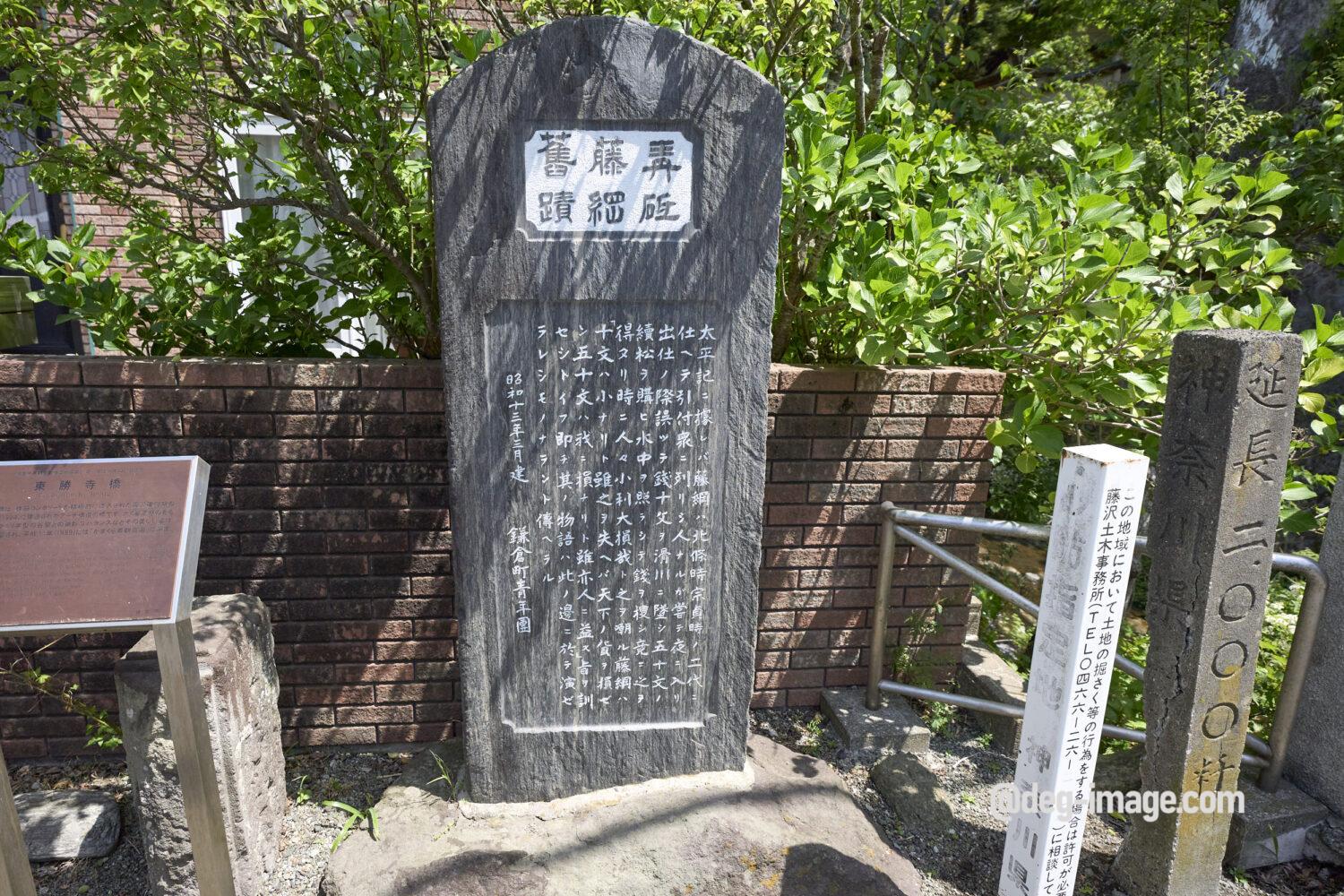 宝戒寺を出て小町大路を右(南方向・・海側)に進むと、右側に東勝寺跡の案内が出てくるので左に曲がります。東勝寺跡の先には祇園山ハイキングコースの入口があるので、そちらを目印でも構いません。