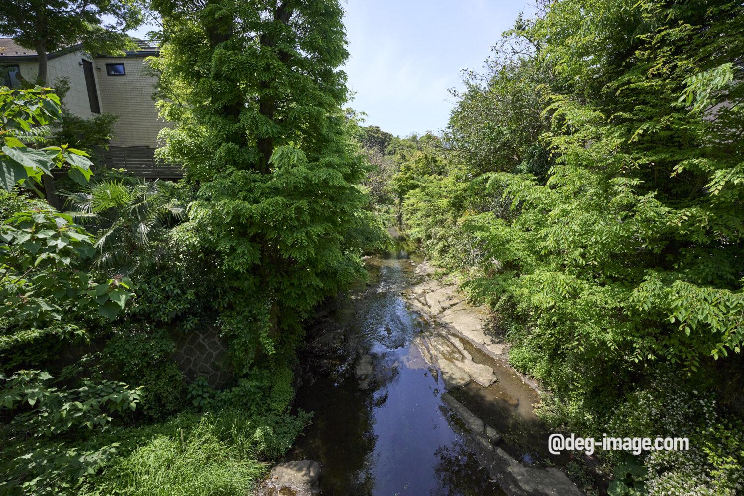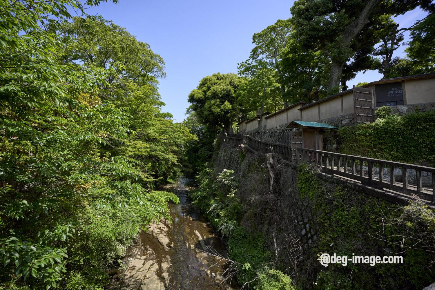 このあたりの滑川は、渓谷のように深く削れており、アーチ状の東勝寺橋は滑川を背景に趣のある眺めです。