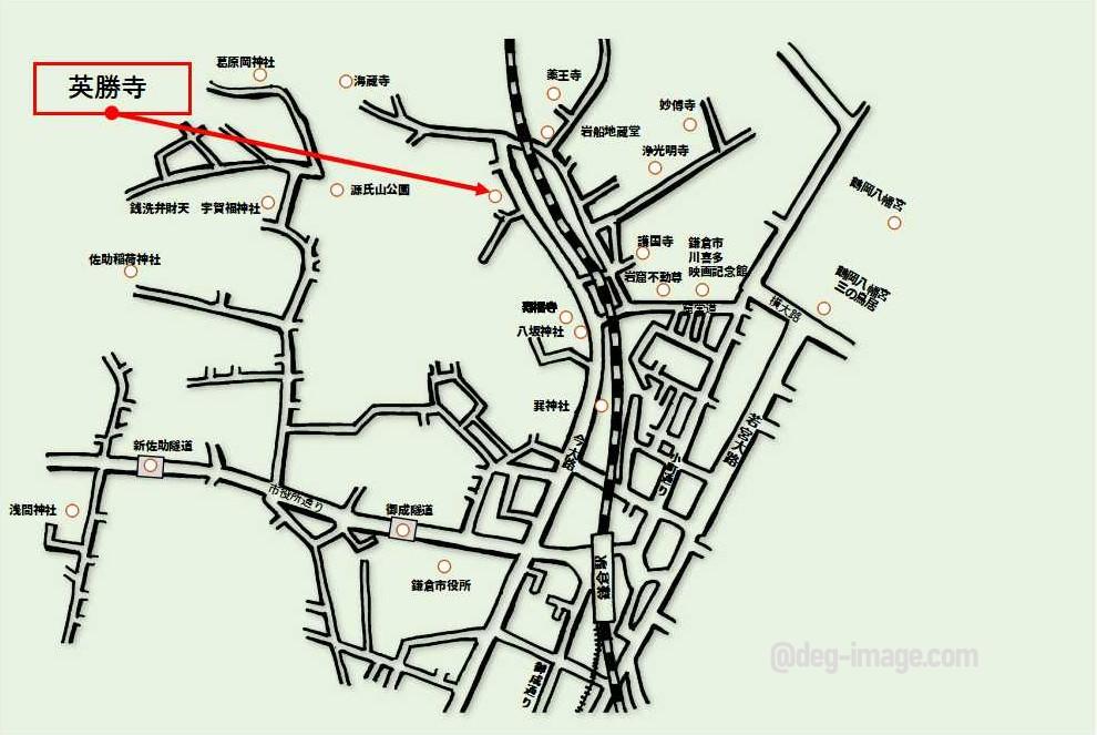 JR鎌倉駅から英勝寺までは、徒歩で800m11分ほどです。