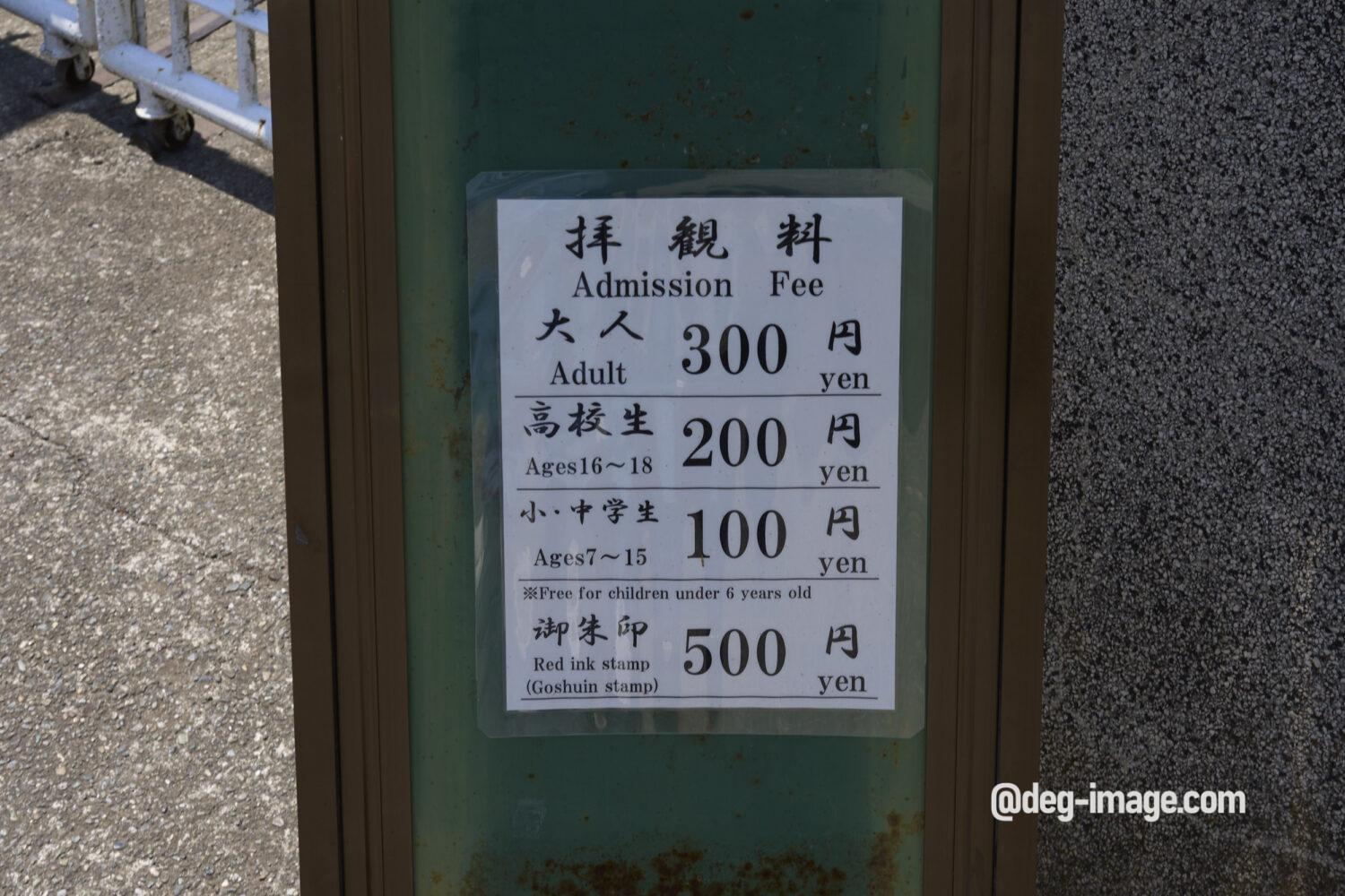 拝観料/入館料 大人:300円 高校生:200円 中学生以下:100円 (2025年現在)