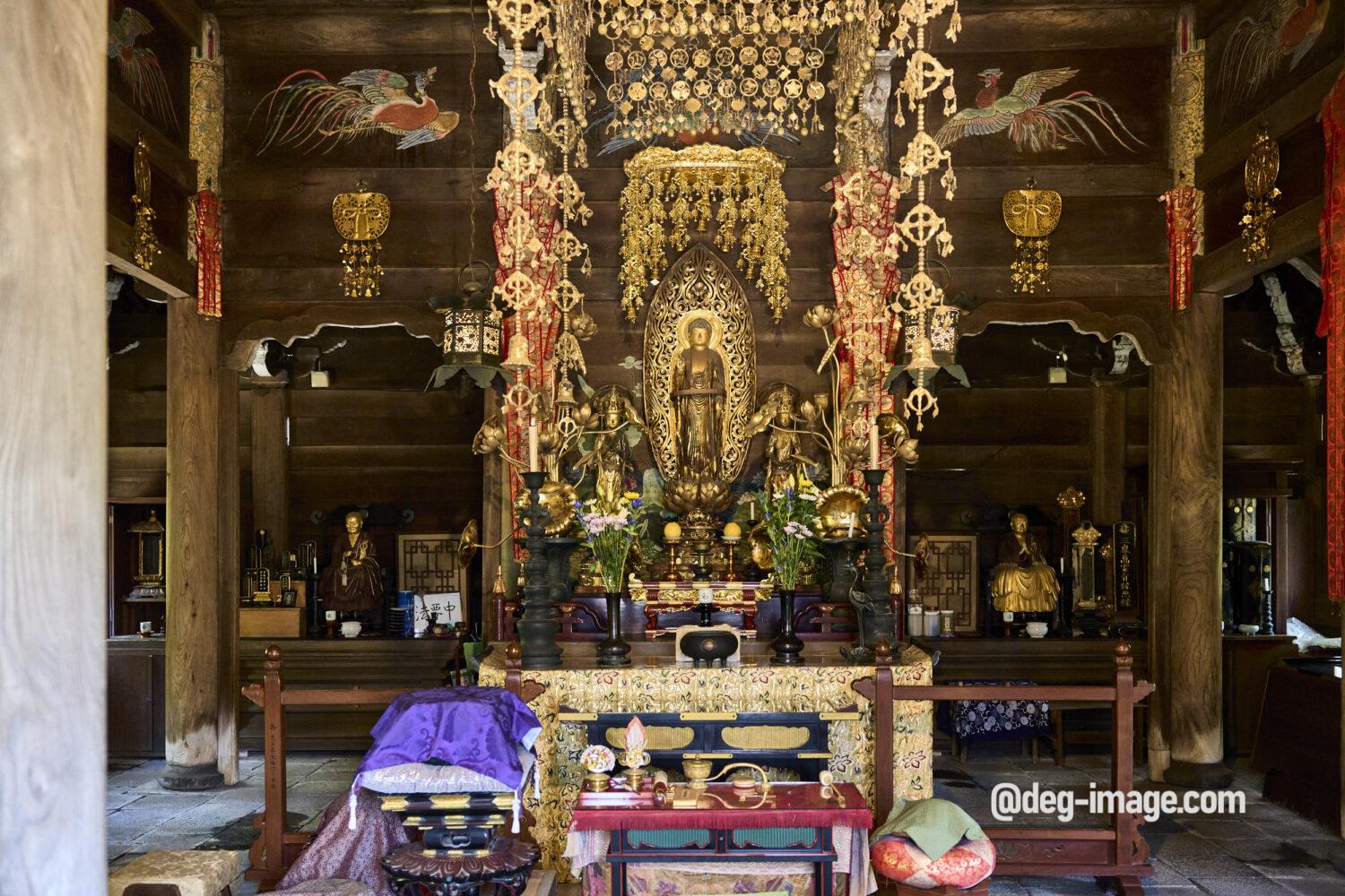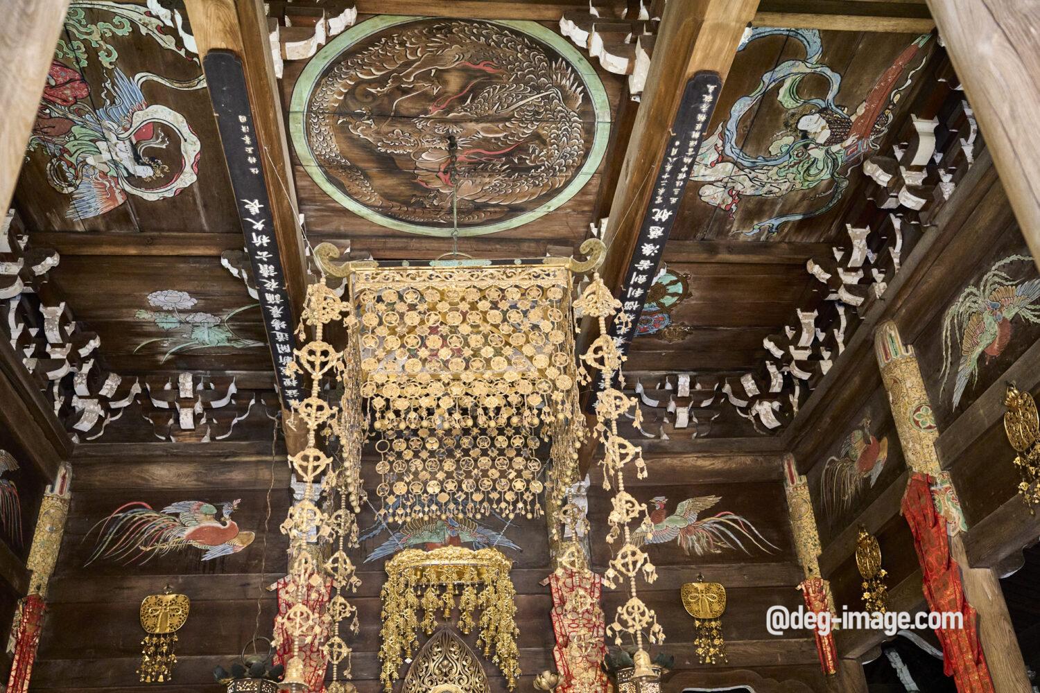 仏殿内部にも美しい飾りや絵、家紋などの装飾が良い状態で保存されています。