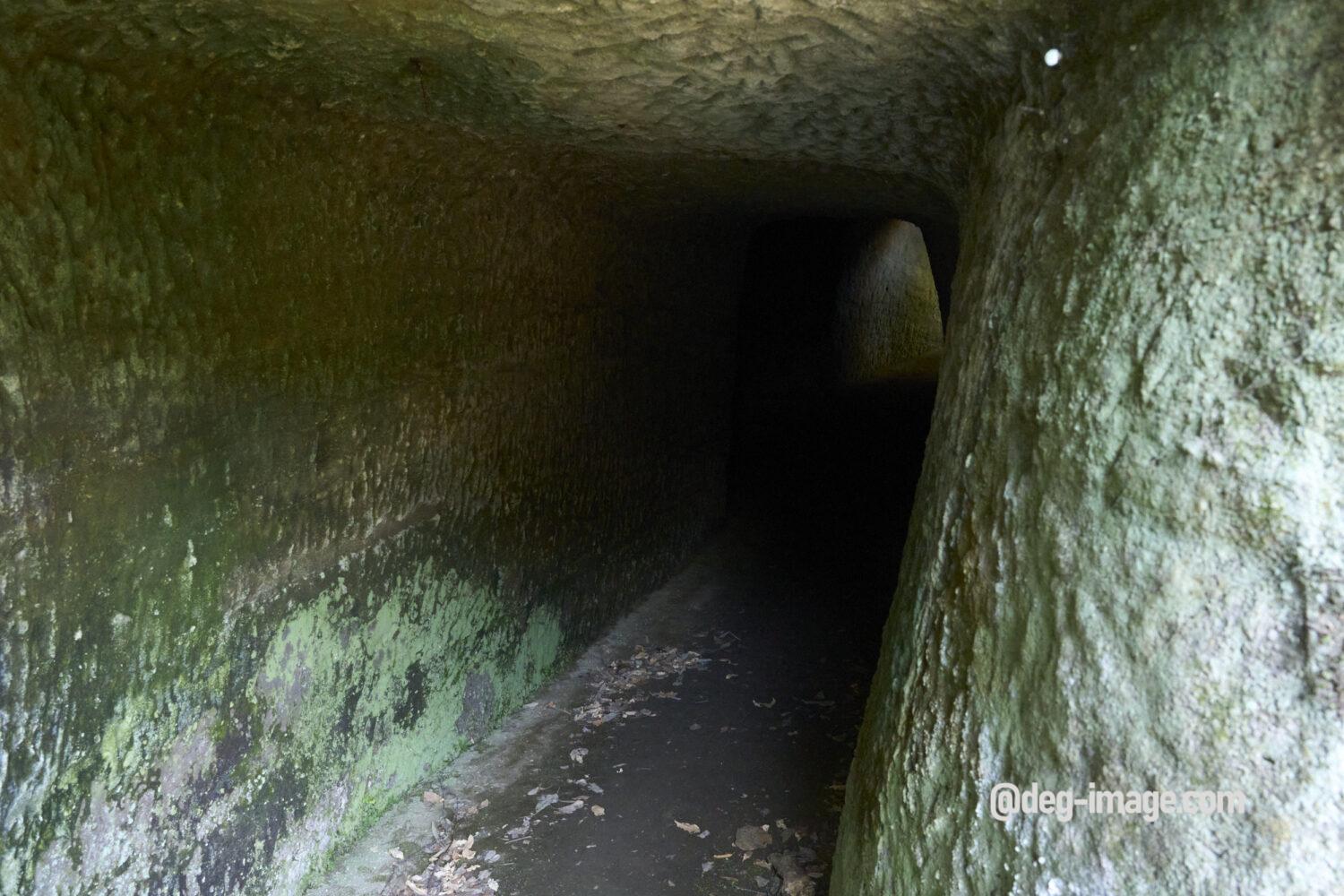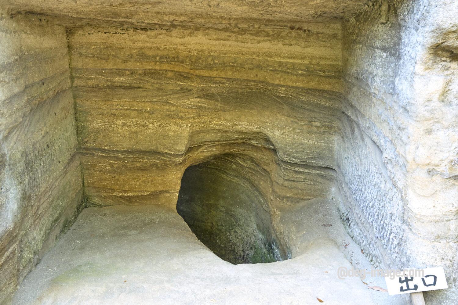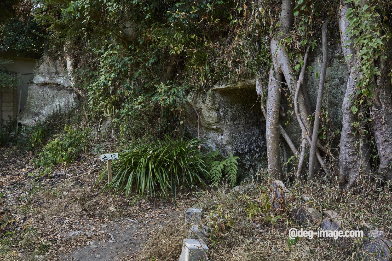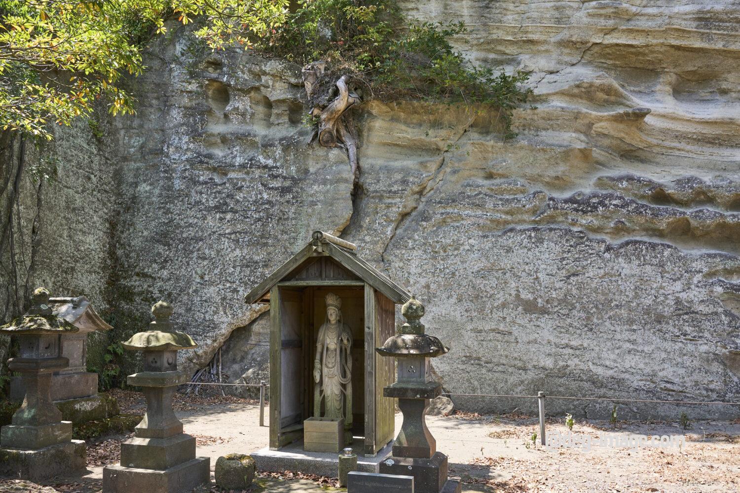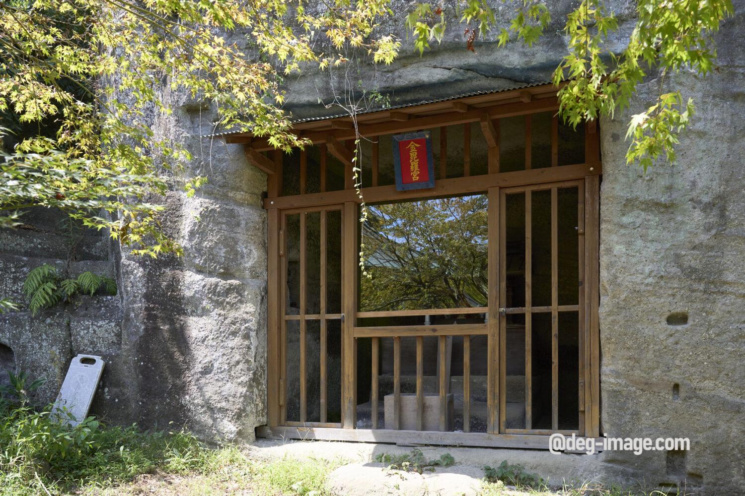 山門の横の山肌に彫られた洞窟の中に石仏が安置されています。入口から洞窟に入り石段を登る形で出ることができます。
