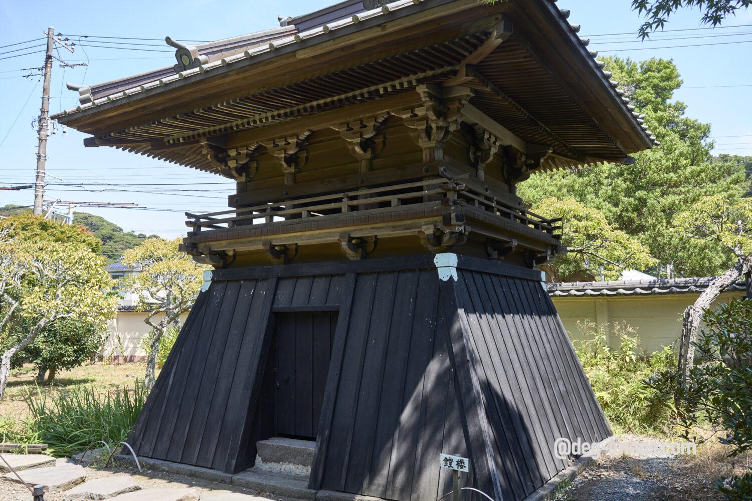 珍しい鐘楼で、袴腰という形式で建てられています。