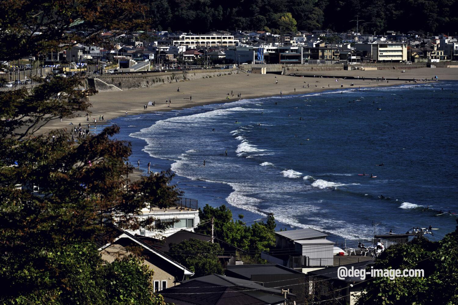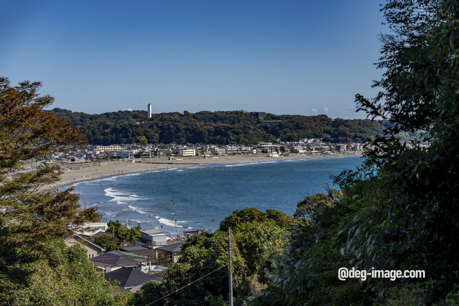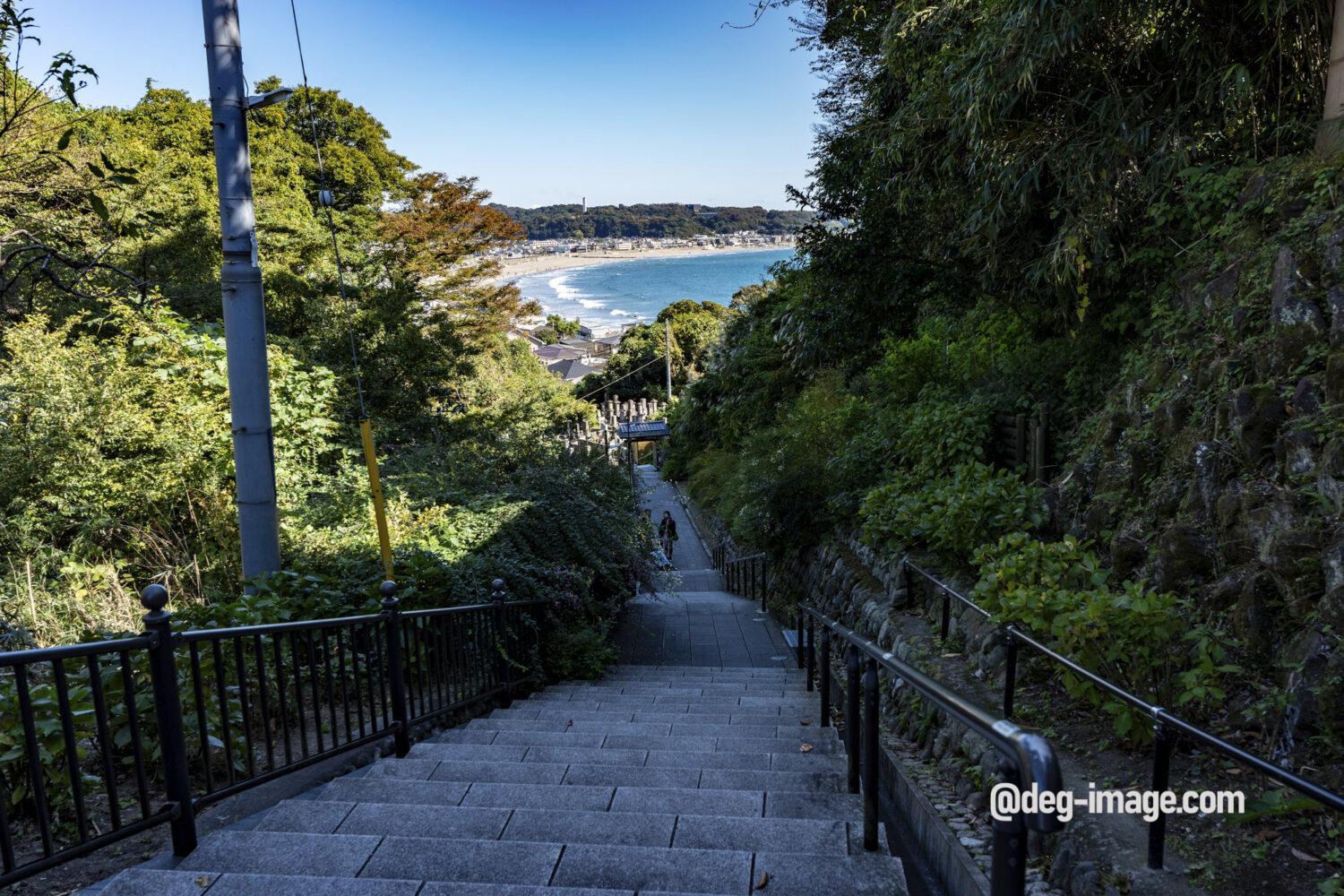 参道を上っていくと、後ろに由比ヶ浜が一望できる。