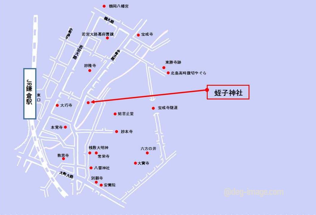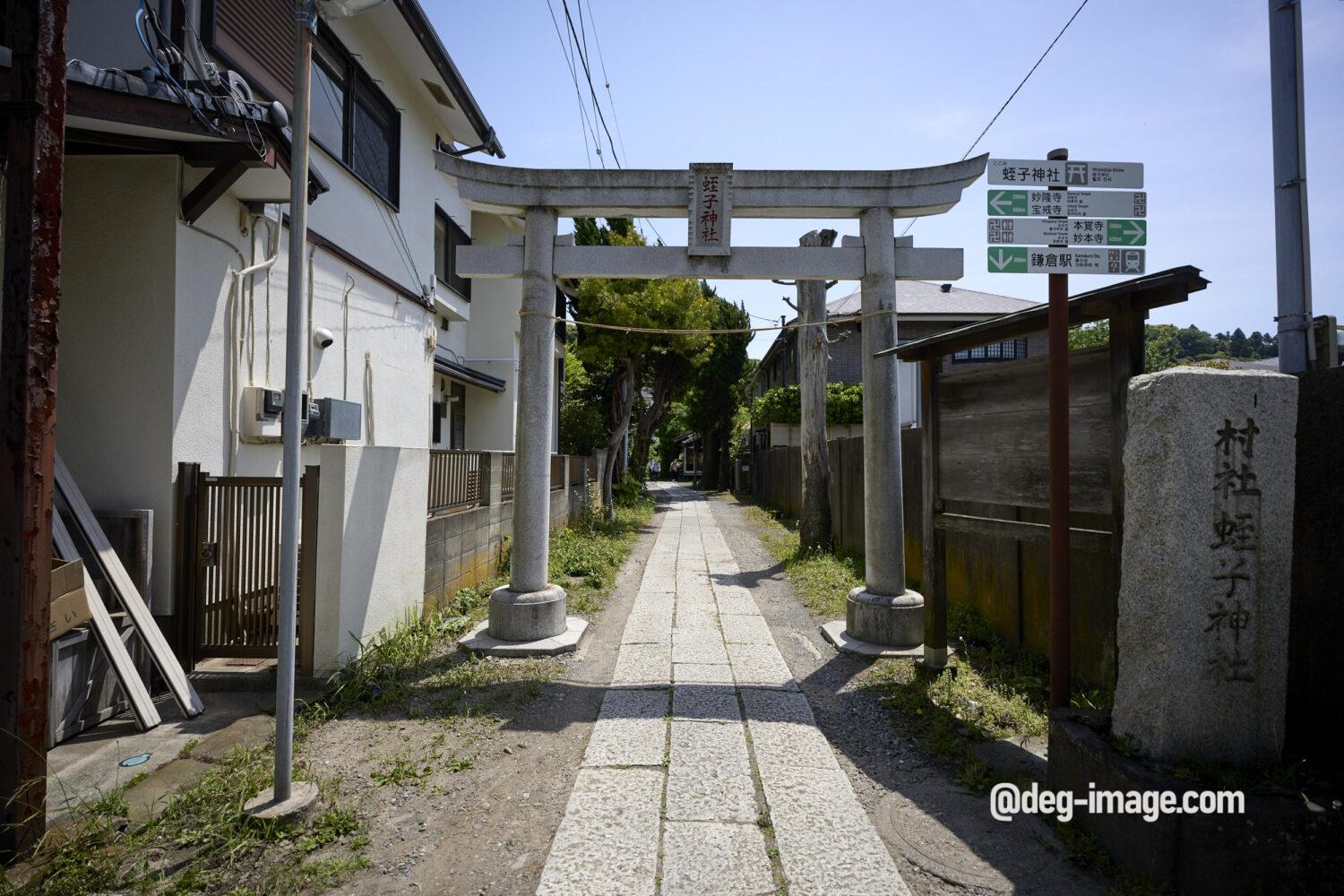 鎌倉駅東口から若宮大路を鶴岡八幡宮方向に進み、二の鳥居前交差点を右に曲がって進むと小町大路に面した蛭子神社正面に出ます。小町大路を歩いていても見逃してしまいそうなほど、入口は小さくて住宅街に溶け込んでいます。