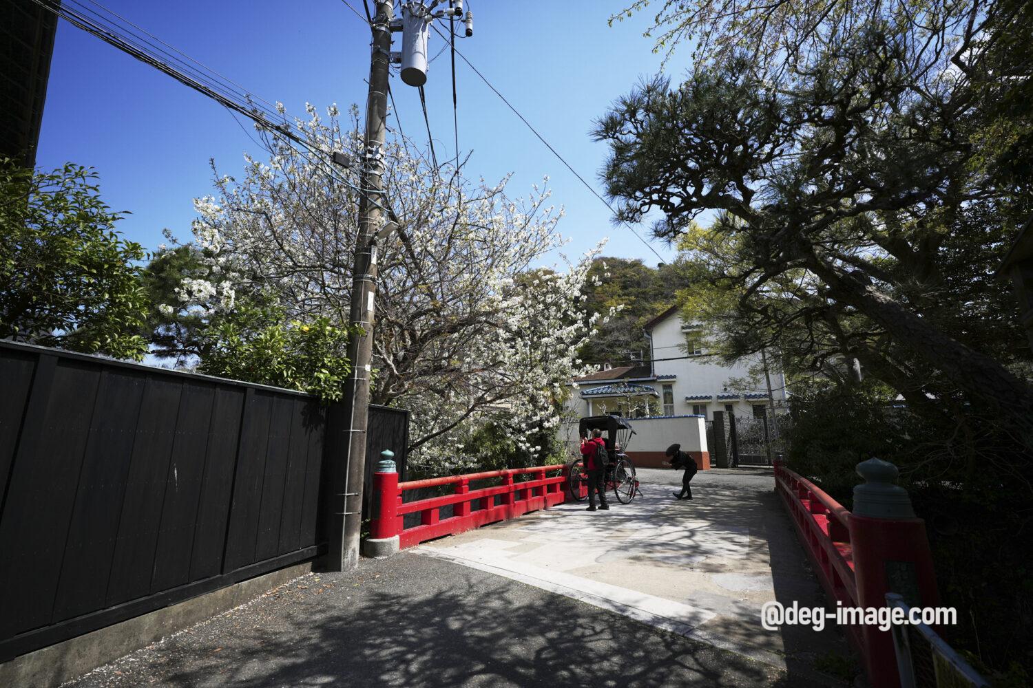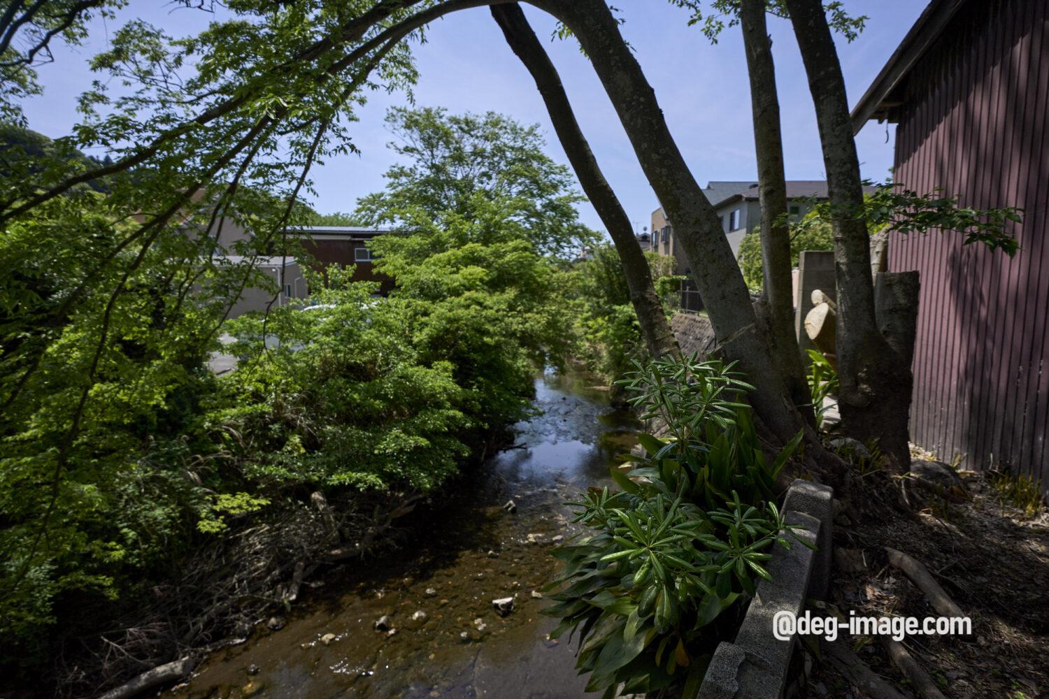 境内から滑川の美しい流れが望めます。また近くには滑川にかかる朱色の「琴弾橋」があります。