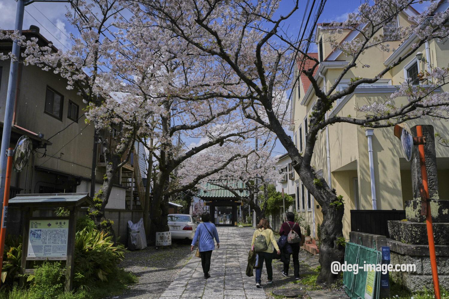 小町大路から奥まったところに山門があり、春になると参道には美しい桜が咲いています。