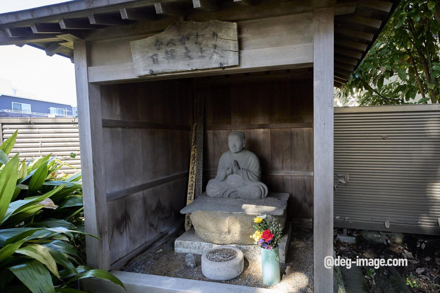 本堂は公開されていませんが、本尊は日蓮上人坐像、ほかに釈迦如来立像、子育て鬼子母神などが祀られています。