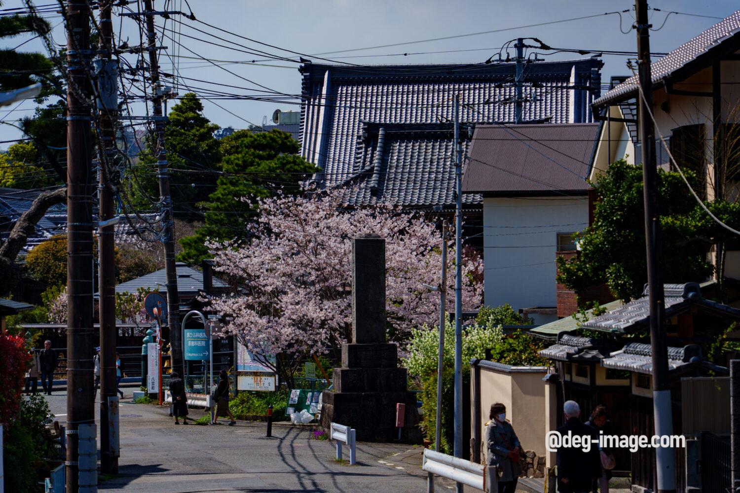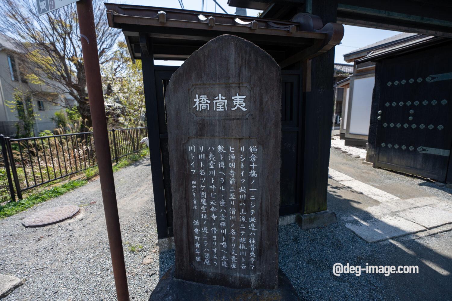 滑川にかかる夷堂橋の先は南に折れ大町に続きます。橋の先を直進すると妙本寺に至ります。