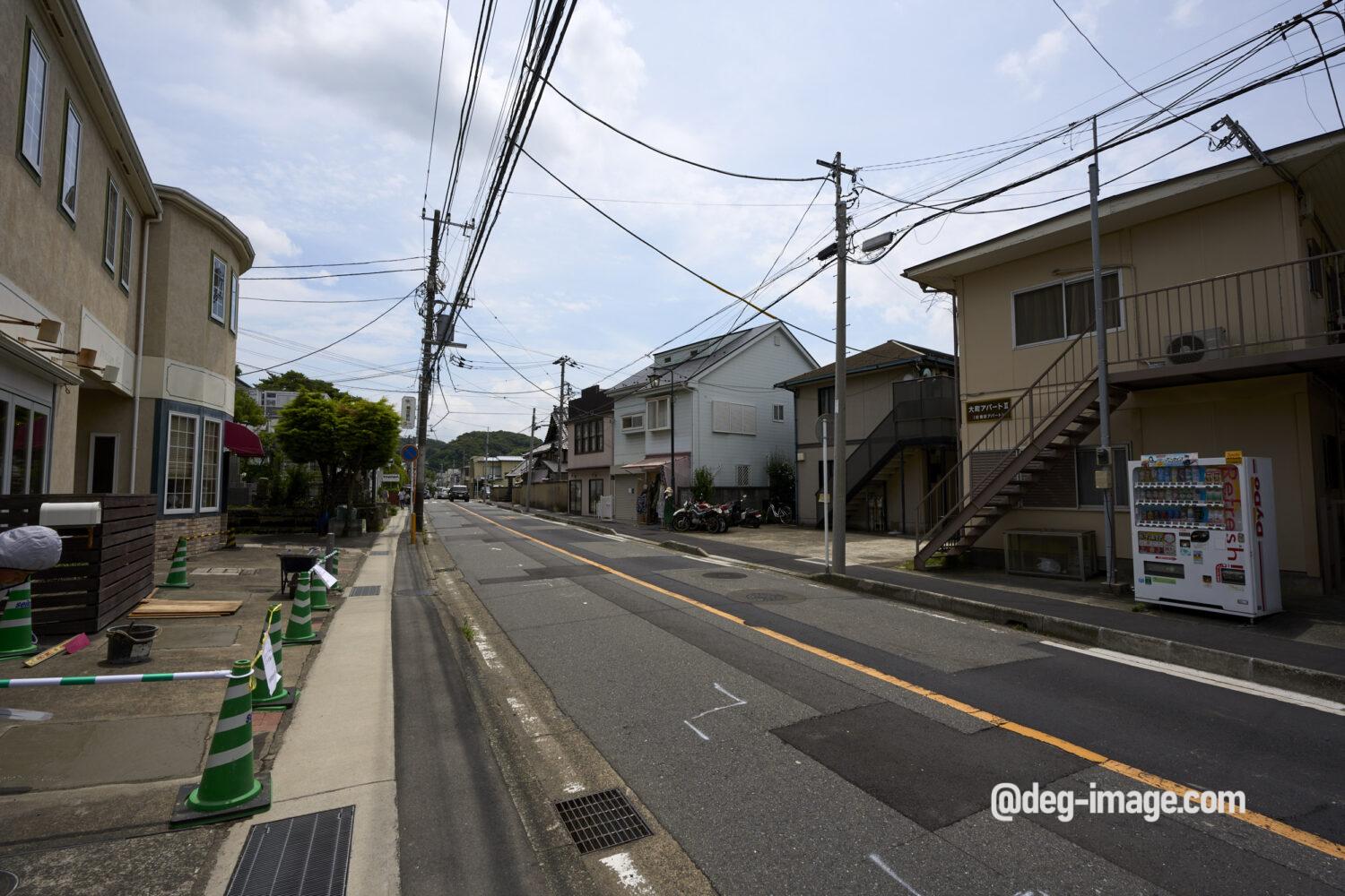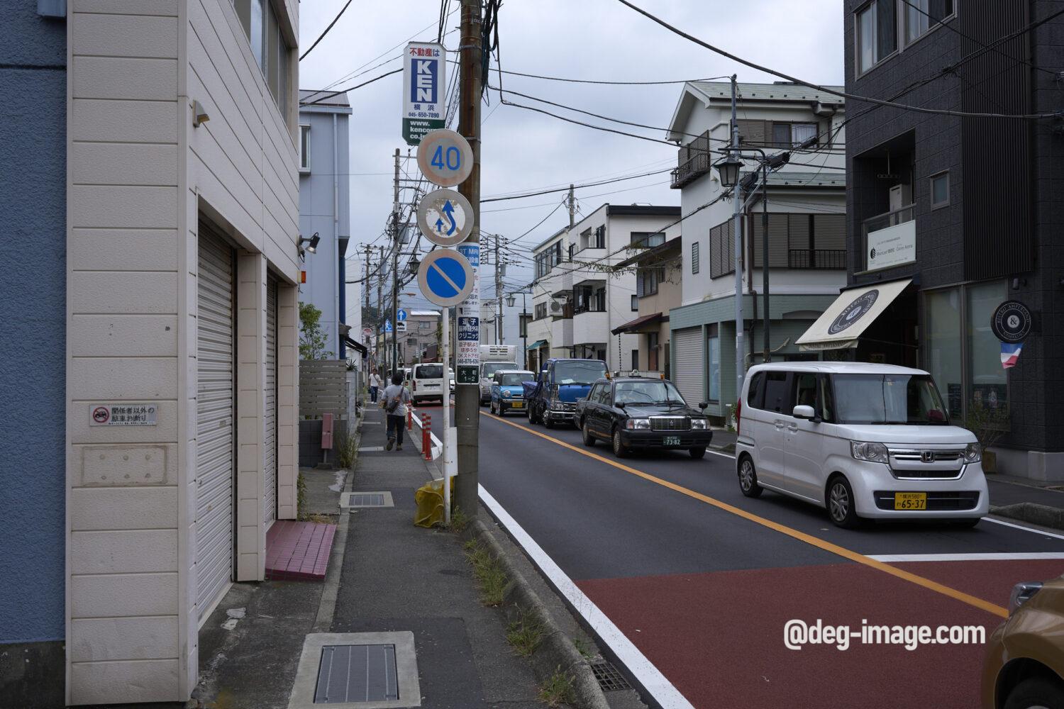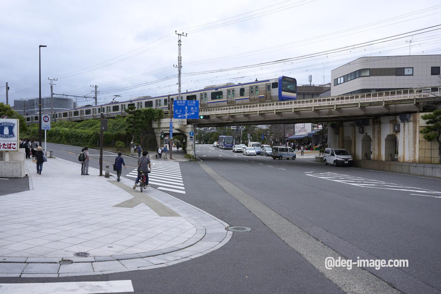 大町橋を渡ると右にJR横須賀線の踏切が見え、大町大路との交差点となりますので、左に曲がります。
