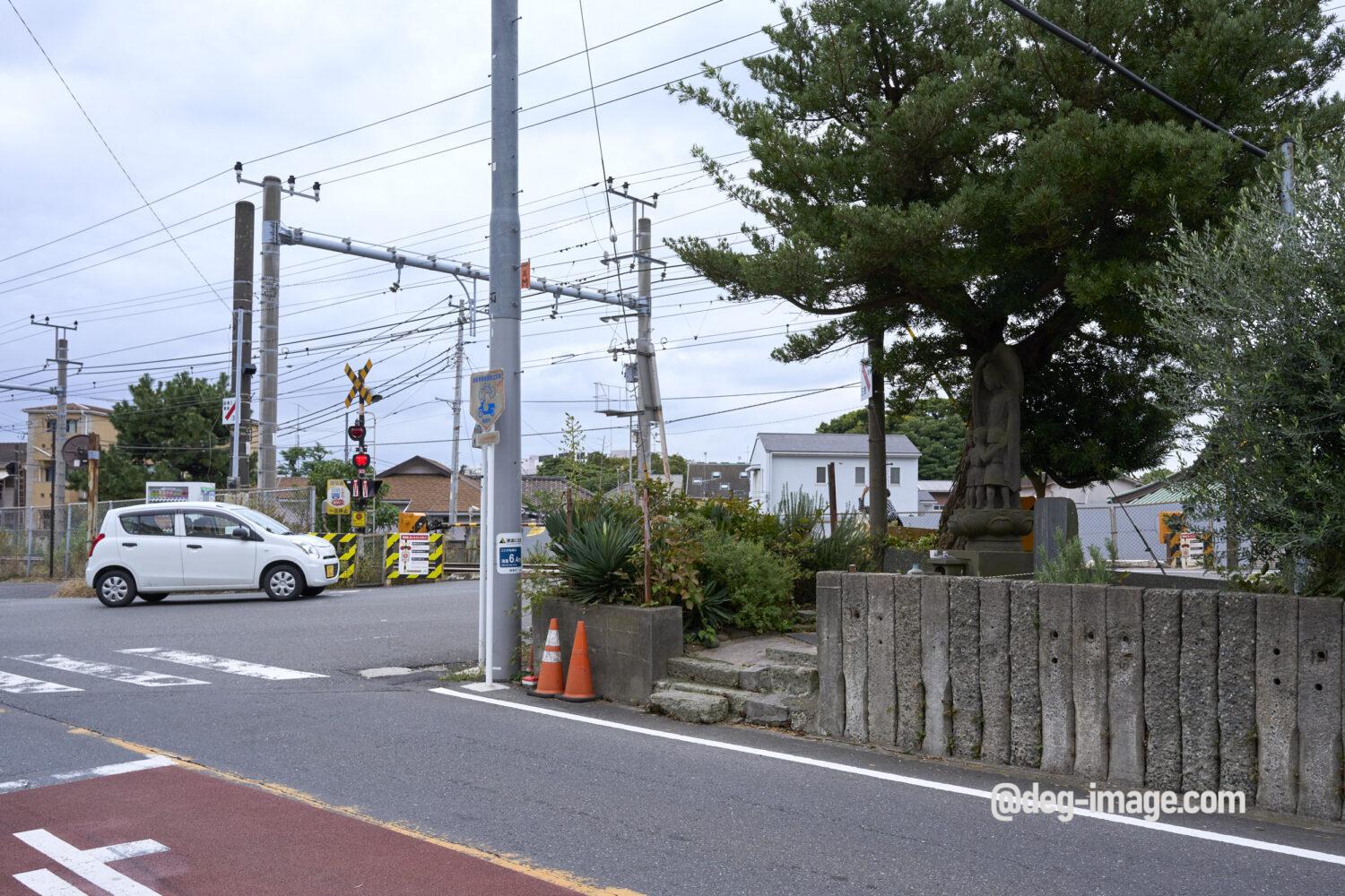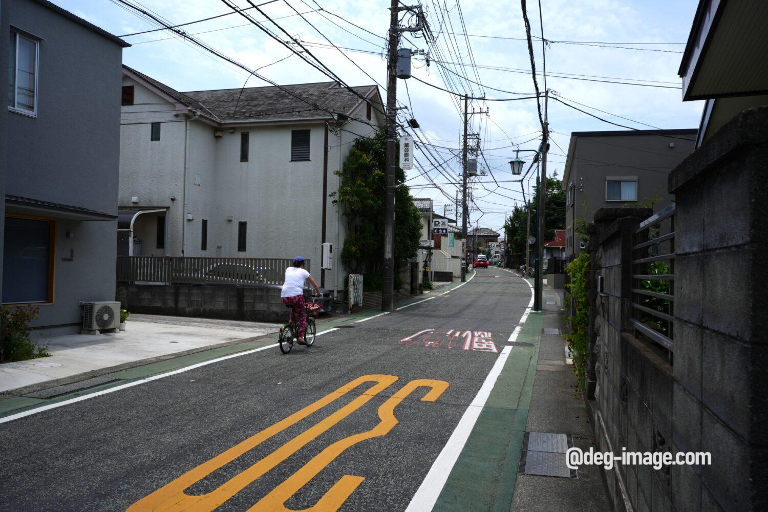 鎌倉市農協連即売所を過ぎて、ローソンのある交差点でJR横須賀線高架橋の手前の左斜め方向に入る道を進みます。