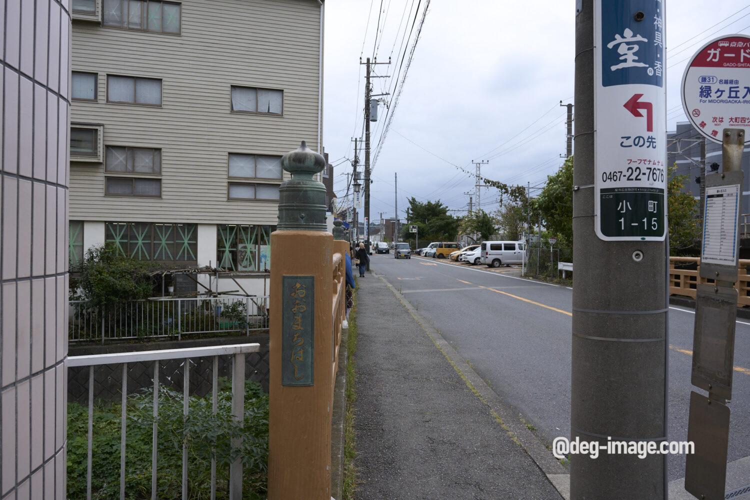 しばらく進み小町大路に突き当たったら右にしばらく行くと夷堂橋が滑川にかかっています。