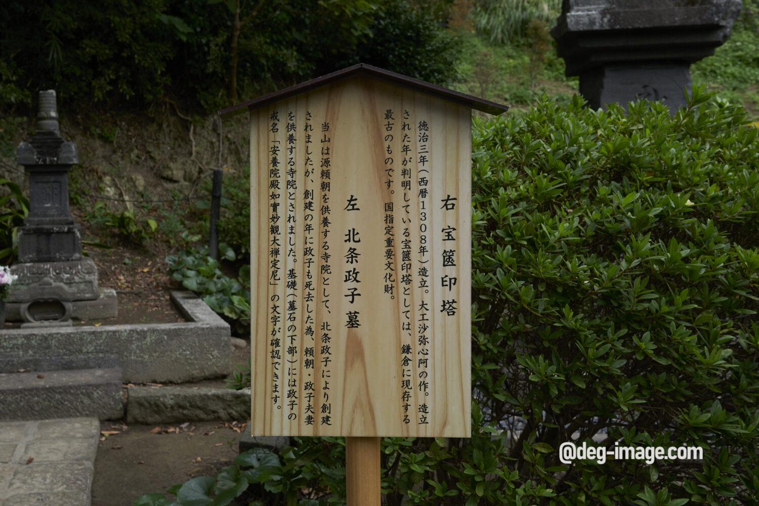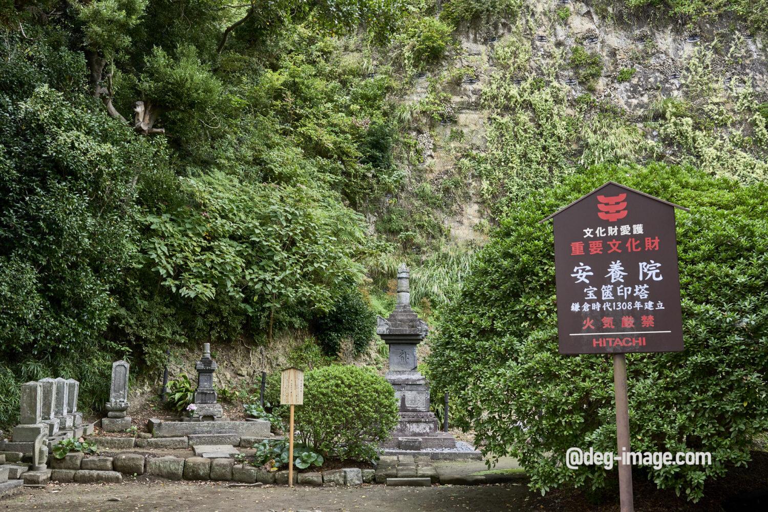 小さい石塔は安養院を開基した北条政子の墓とされている宝篋印塔です。