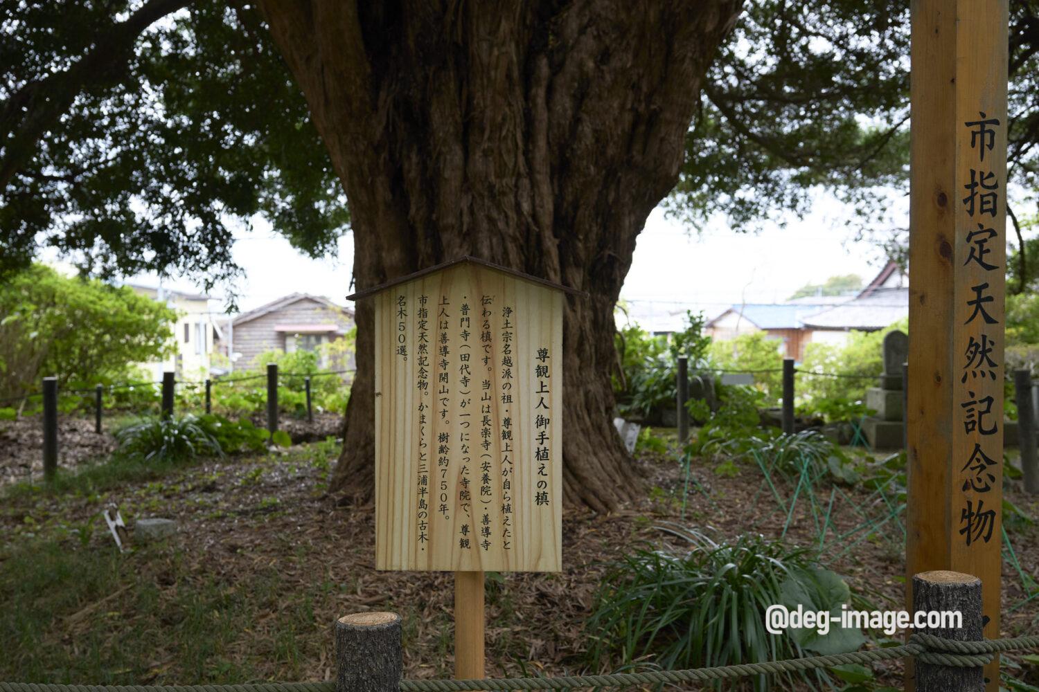 本堂前には樹齢750年と言われる槙が植えられています。(鎌倉市天然記念物)