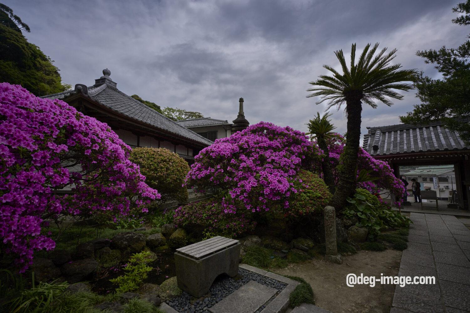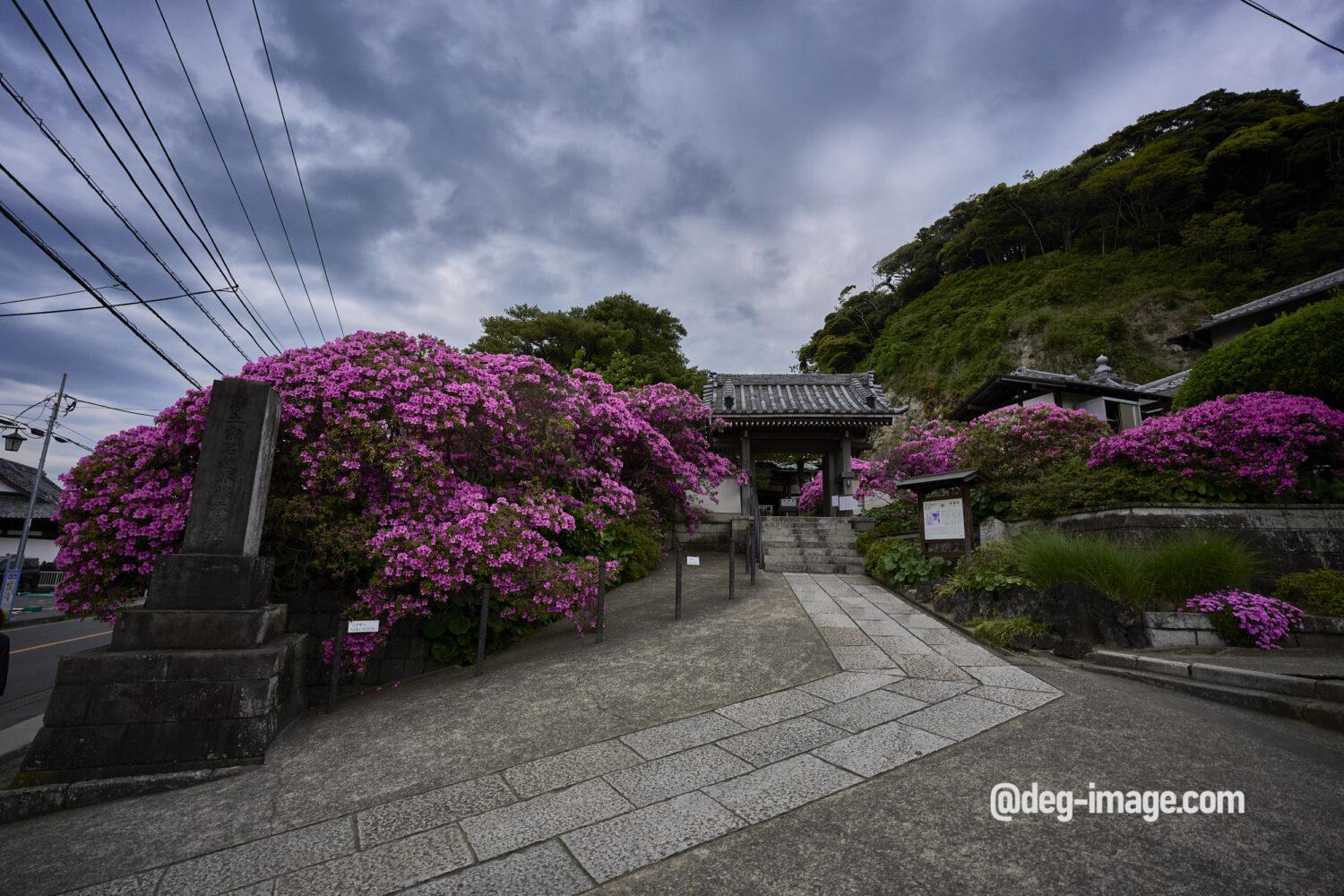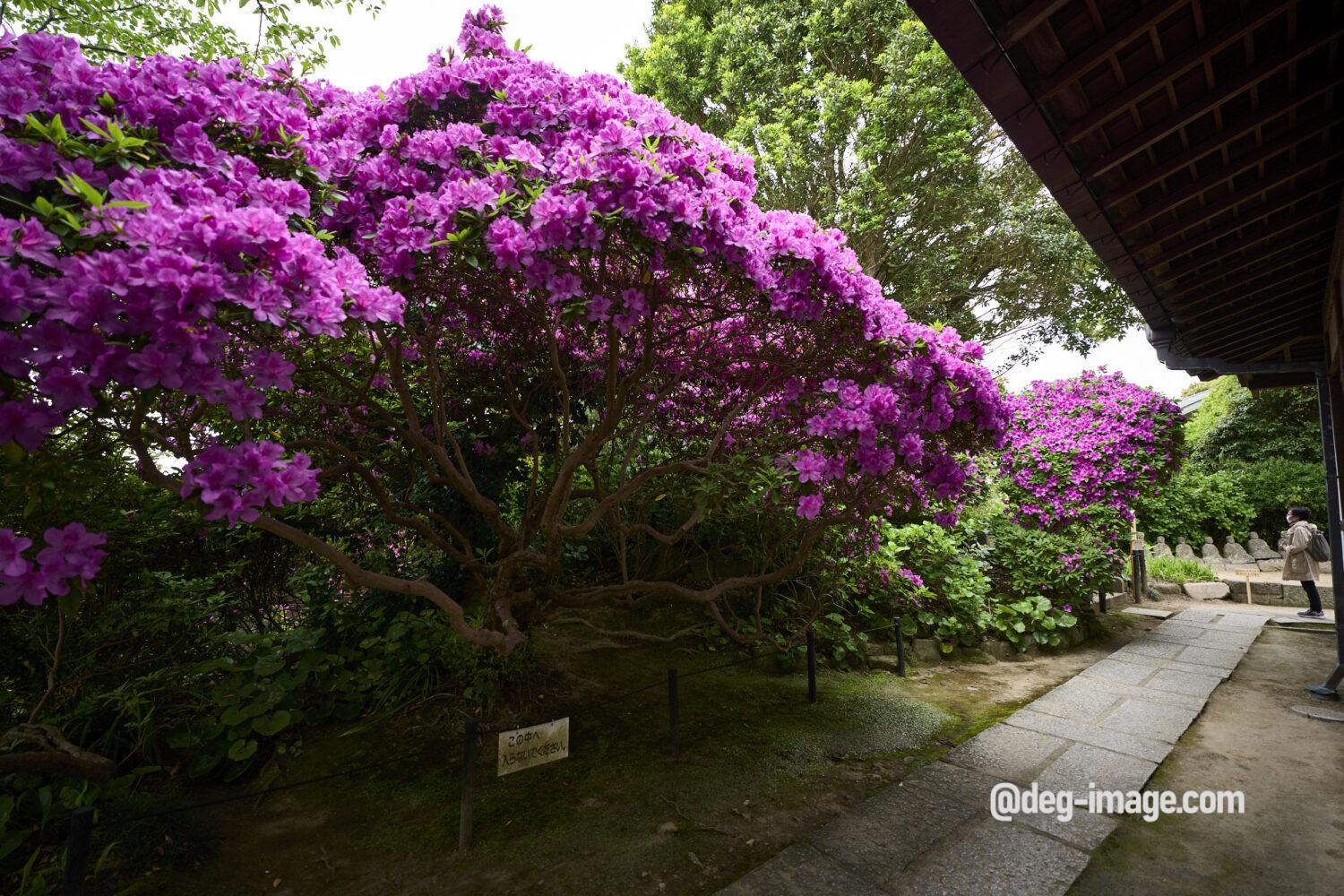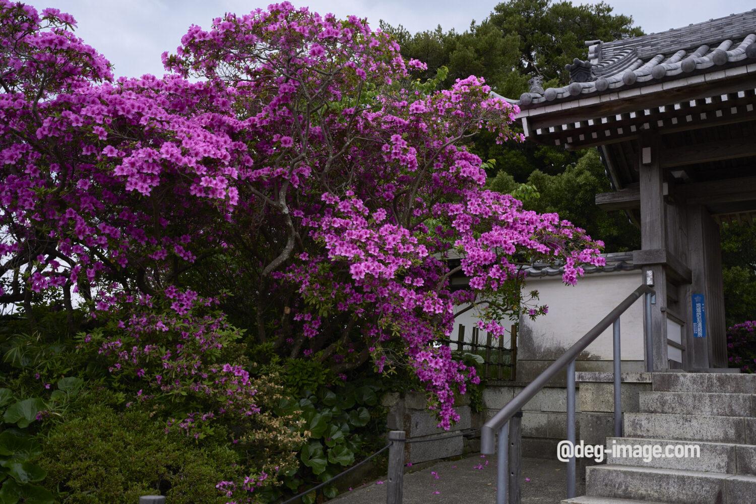 安養院は「つつじ寺」とも呼ばれ、5月には山門前から境内のいたるところがオオムラサキツツジの鮮やかな色に染まります。