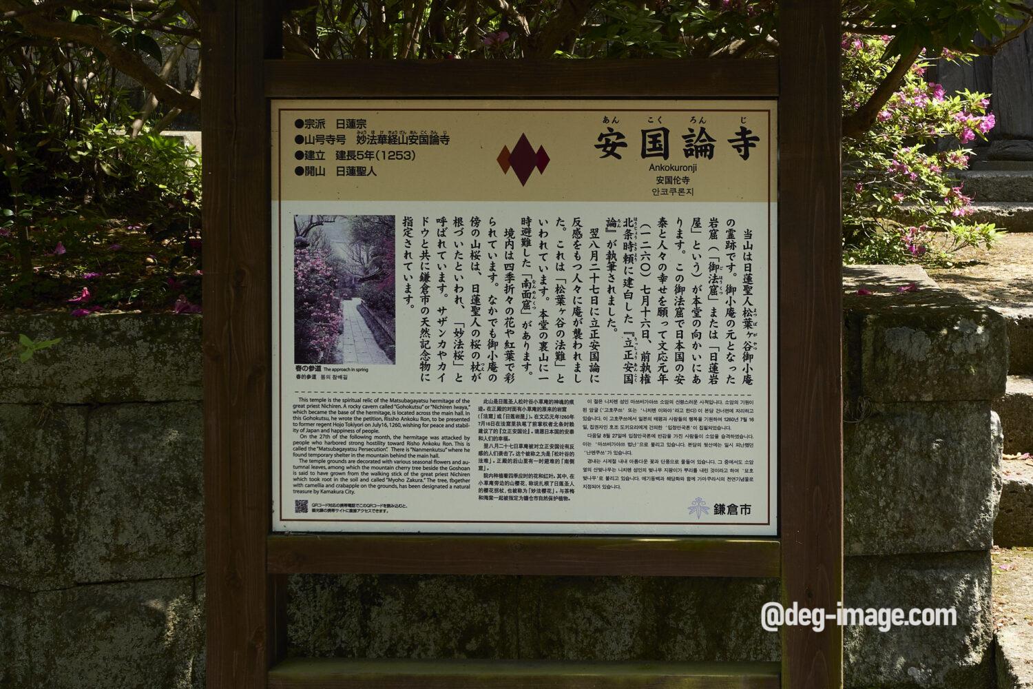 安国論寺は鎌倉市大町(名越)にある日蓮宗の寺院です。日蓮聖人の草庵跡に日蓮聖人の弟子の日朗が文応元年(1260年)に安国論窟寺を建て、現在の安国論寺となったと伝わります。