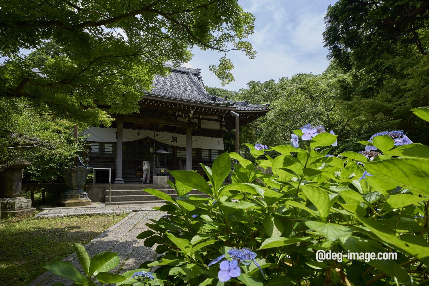 鎌倉市天然記念物に指定されているサザンカ、カイドウ、妙法サクラはじめ、紫陽花、桃、ツツジなど季節折々の花々が楽しめます。