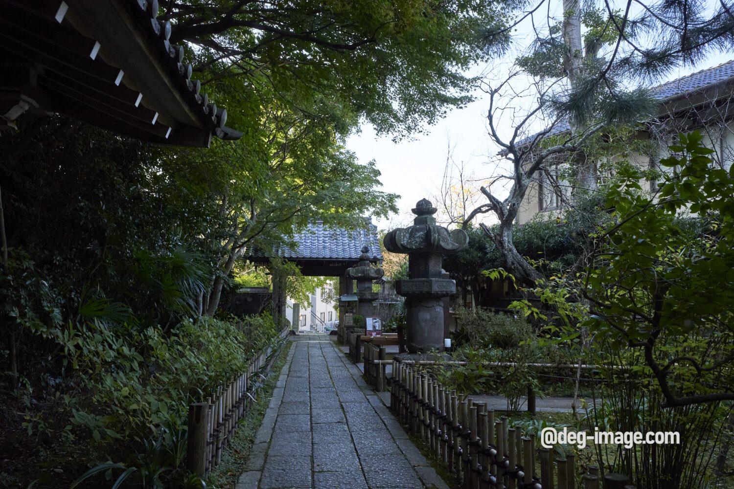 鎌倉駅から徒歩コースもご検討ください。鎌倉駅東口から大町大路の名越バス停までは徒歩で20分ほどです。駅から若宮大路ー大町大路と進む道、若宮大路を横切って小町大路ー大町大路と進む道があります。鎌倉駅東口から大町大路までは別願寺のページを御覧ください。名越バス停までは別願寺から安養院を経て200mほどの距離です。