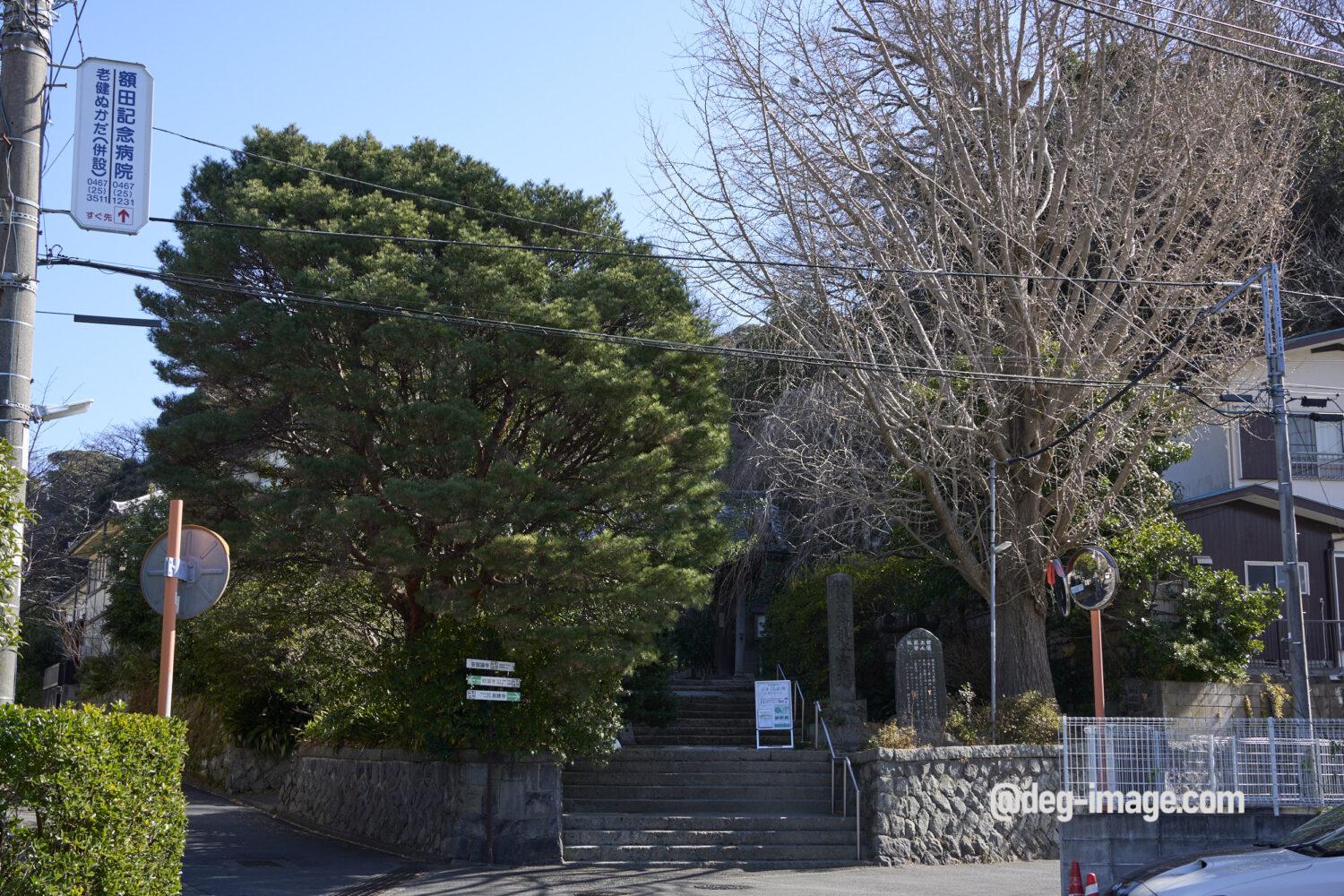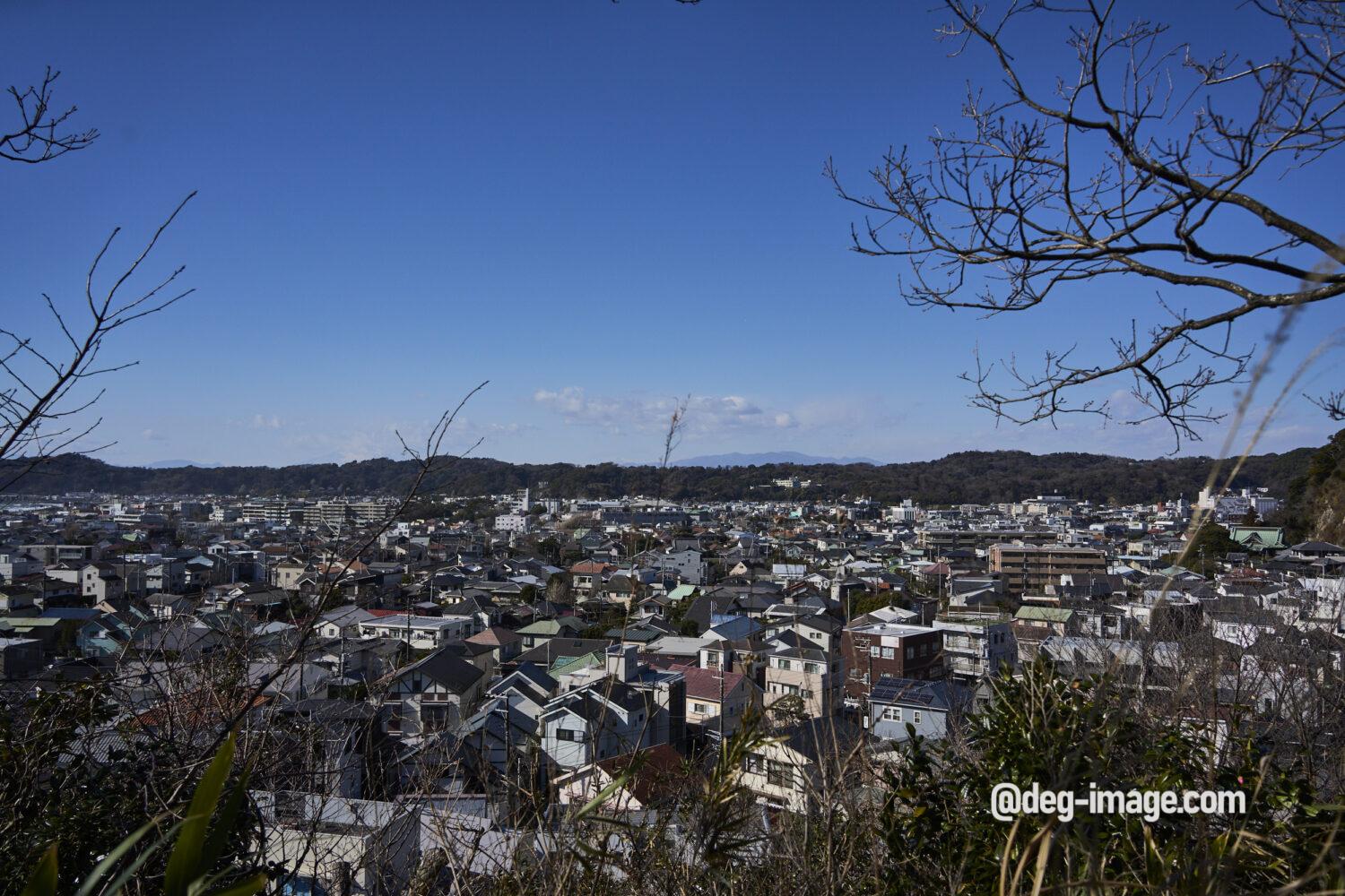 熊王殿右手に急な石段があり、そこを登ると富士見台と呼ばれる高台に着きます。日蓮聖人が日々富士山に向かって題目を唱えたとされます。鎌倉の中心部から由比ヶ浜あたりまで一望することができ、ここからの富士山は山越しに眺めるせいか、迫力があります。