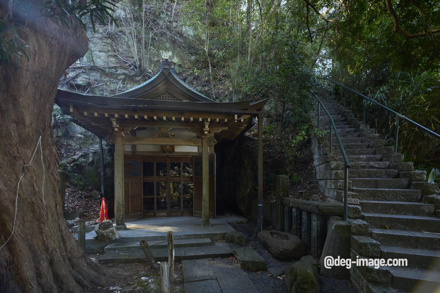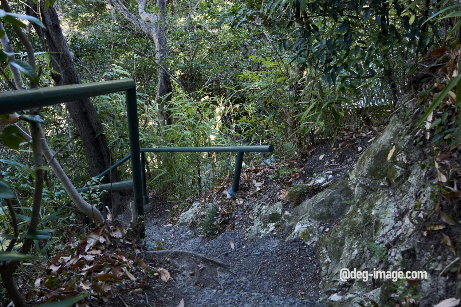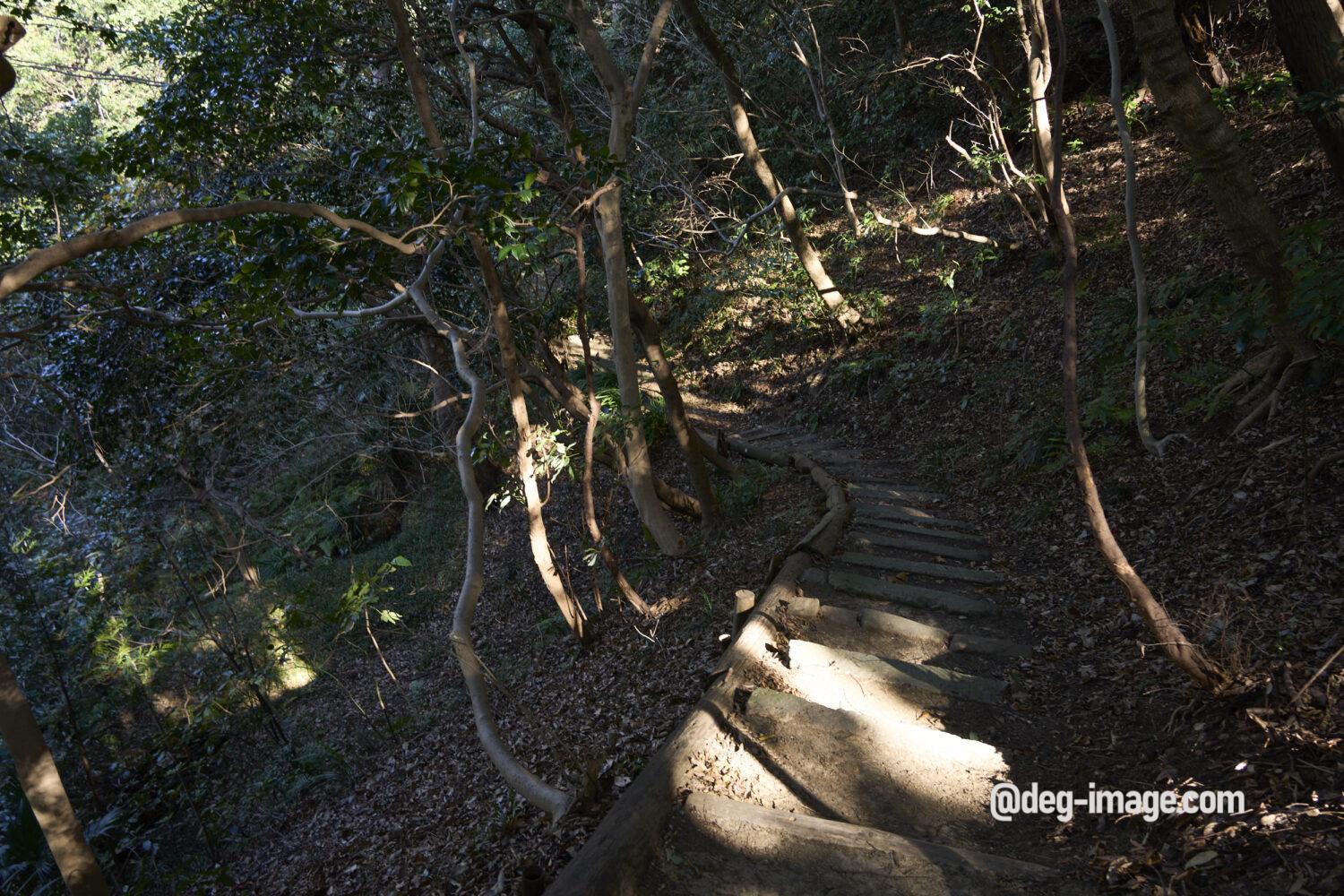 そのまま尾根伝いに進むと鐘楼から南面窟を経由して祖師堂に戻ります。一周するには15分程度かかります。熊王殿右横の石段は上に行くに従い急になり、段差も大きくなるので登るのも降りるのも注意が必要です。南面窟側から富士見台に行き、そこで折り返して南面窟に戻るルートが体力ない方にはいいかもしれません。