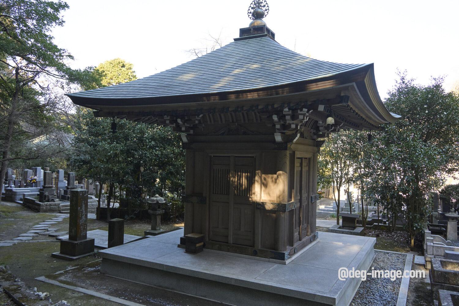師孝第一と謳われた日蓮聖人の弟子日朗聖人は 、死に臨んで出家得度したところで荼毘に付して欲しいと言い遺されました。亡くなられると御遺言に従い池上からこの地に移して荼毘に付されました。