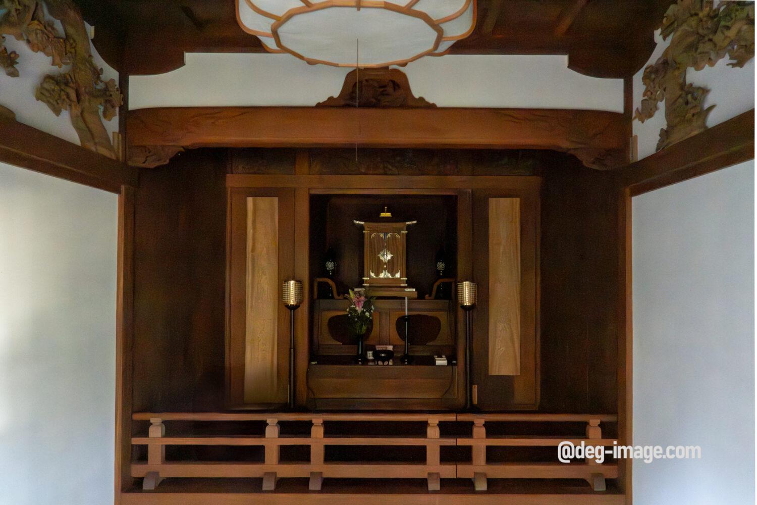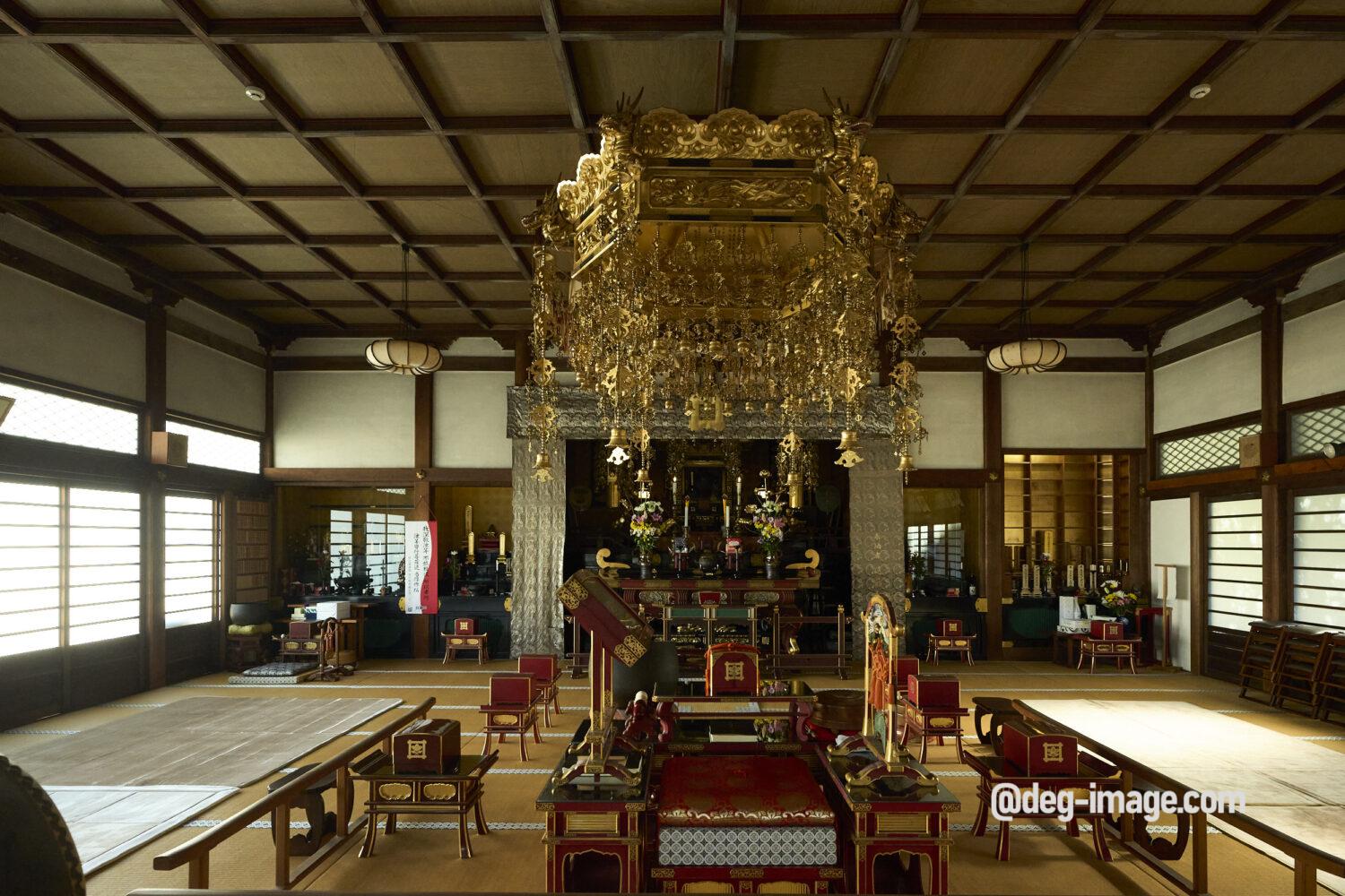 本堂である祖師堂は焼失のため 昭和37年に再建されました。堂内には柱がなく厳かながら広々としています。