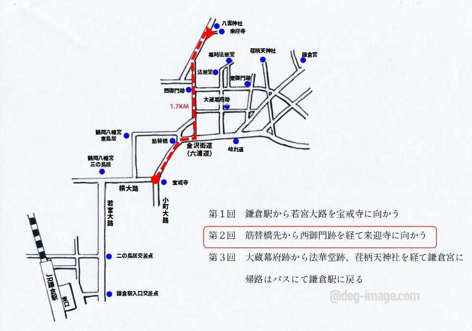 今回の全体的な行程は、徒歩でJR鎌倉駅を出発し、宝戒寺・来迎寺を参拝、