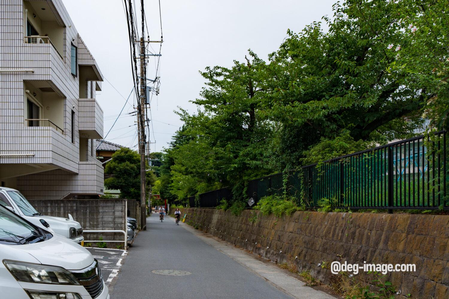筋替橋から鶴岡八幡宮東門までは横浜国立大学教育学部附属鎌倉小学校の南端に沿った路地になっています。