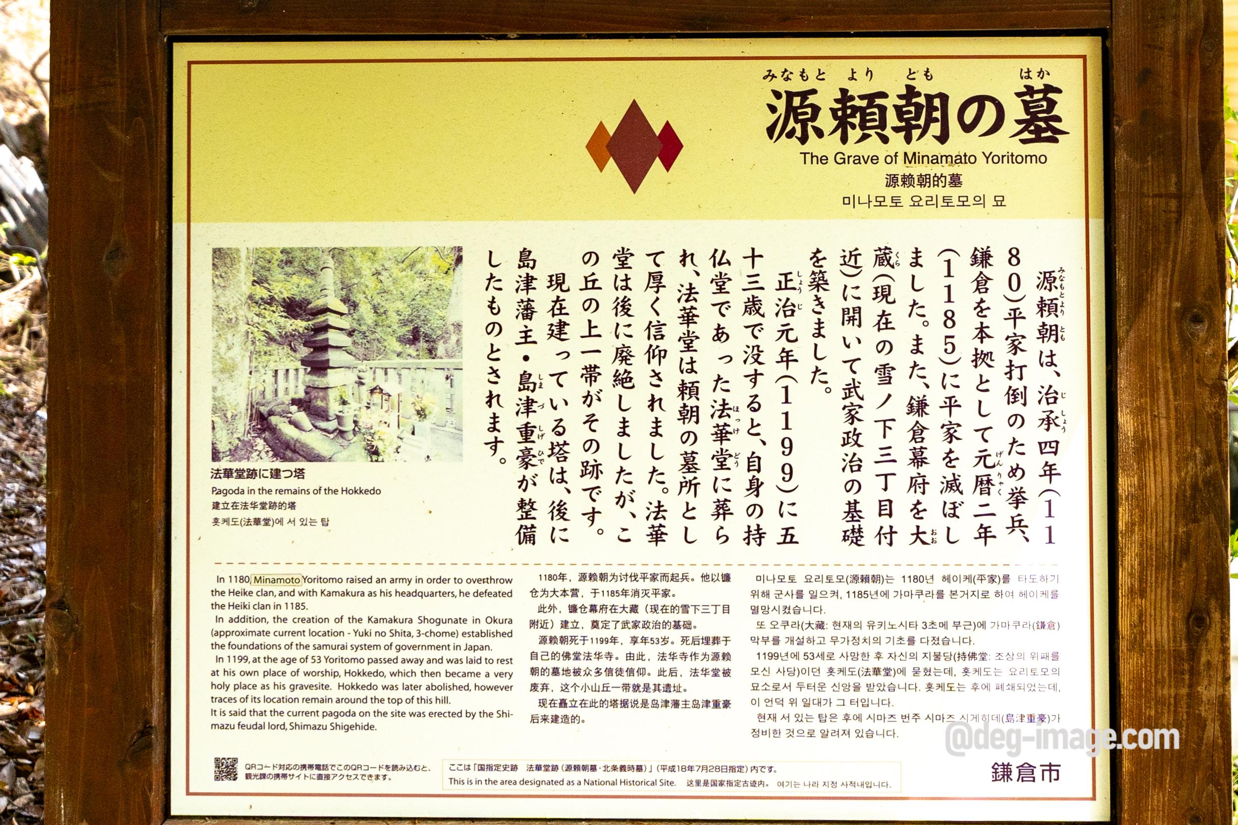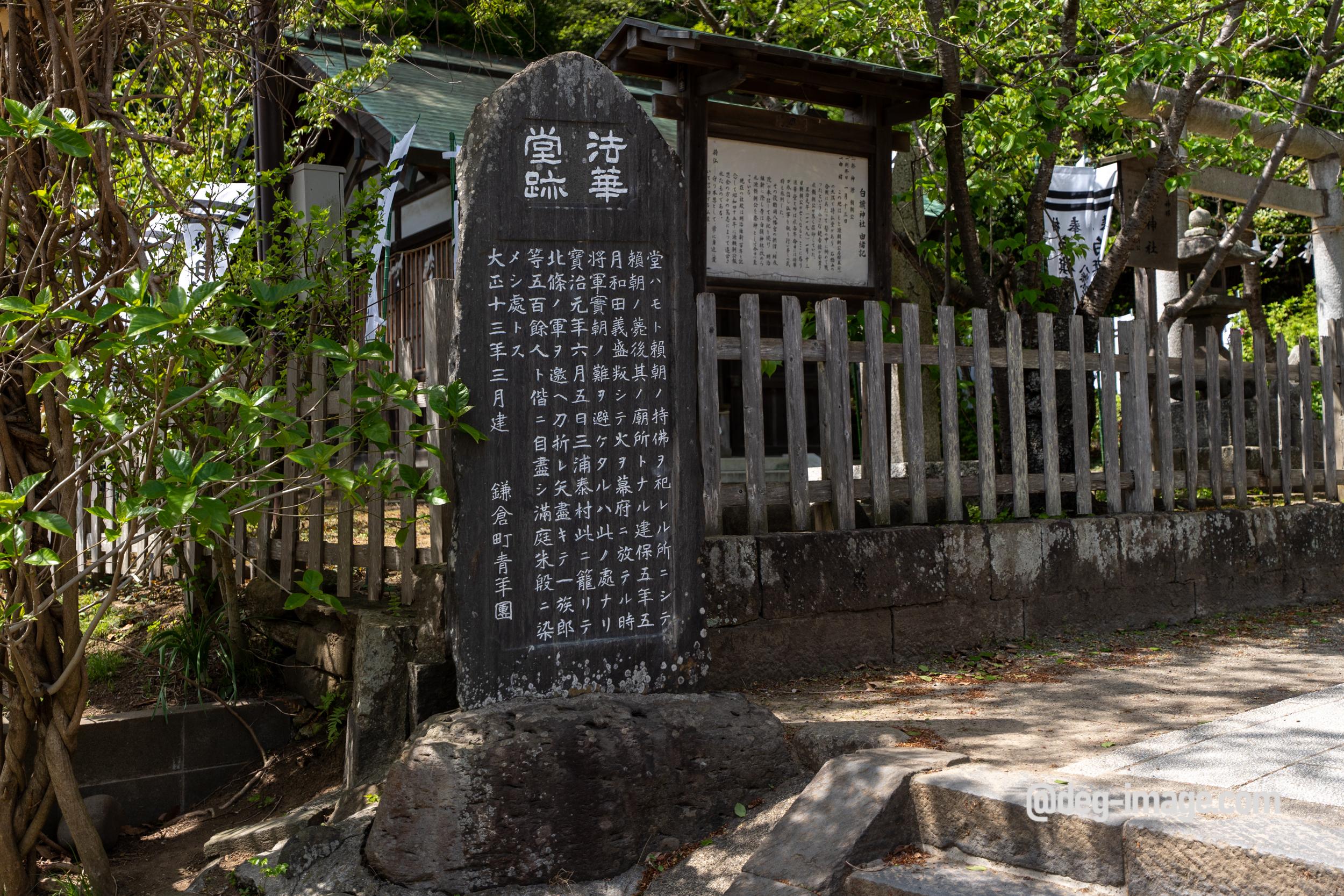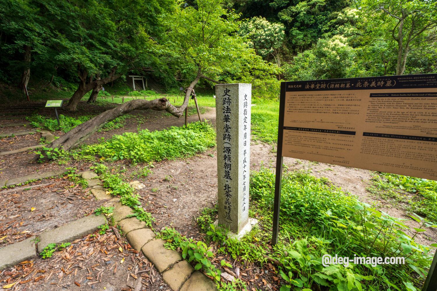 法華堂があったとされる場所は、大蔵御所の北隅と考えられている。もとは頼朝が信仰していた正観音像を祀っていた持仏堂でしたが、頼朝が亡くなるとこの持仏堂に埋葬されました。その後法華堂と呼ばれるようになったとのこと。