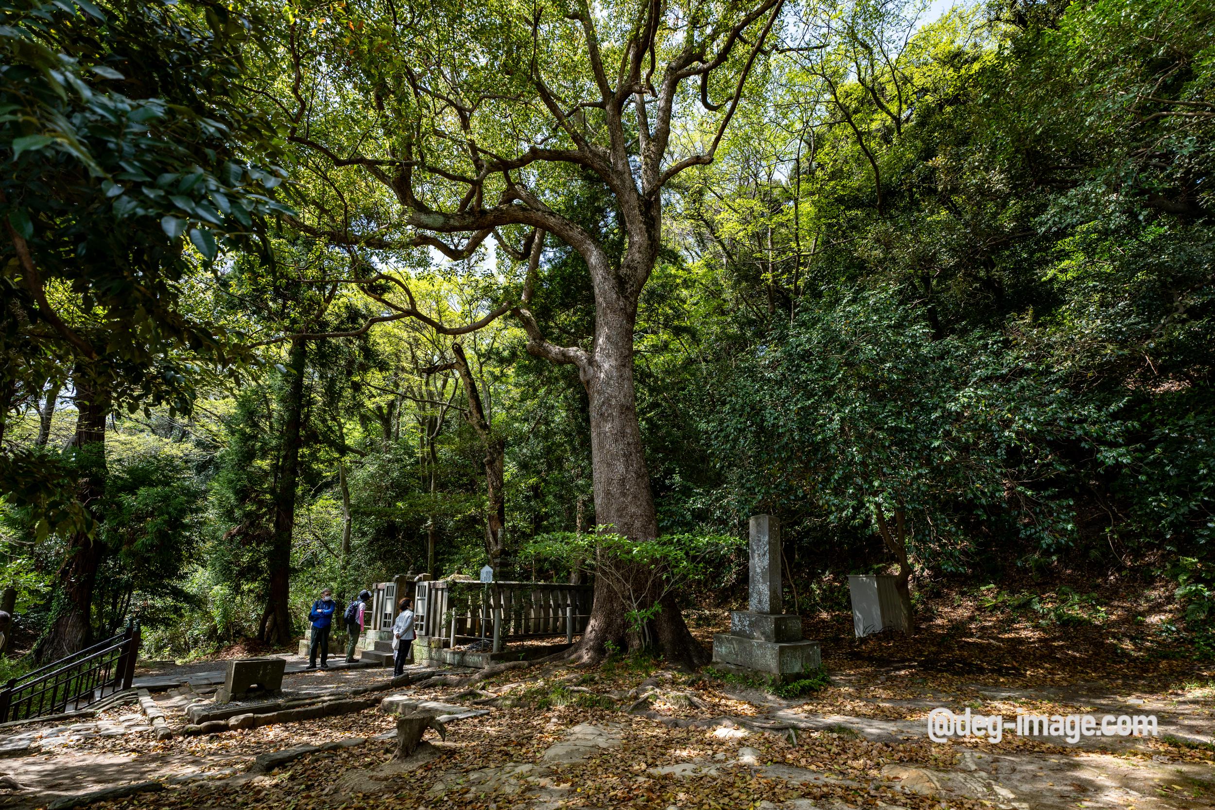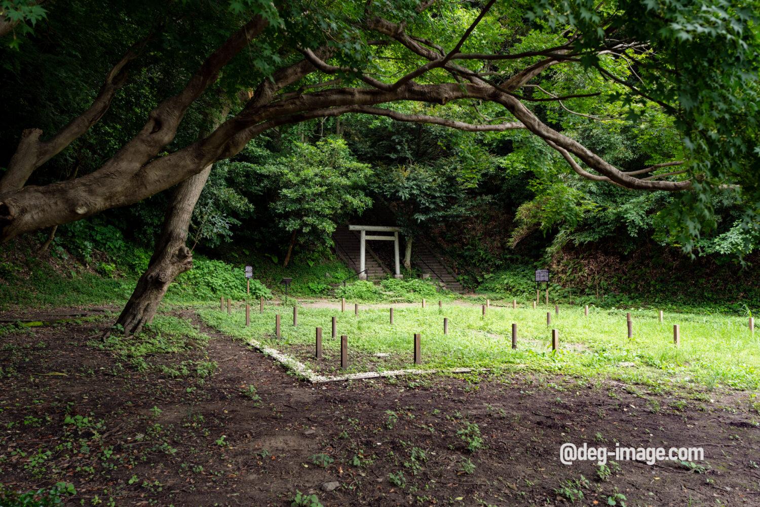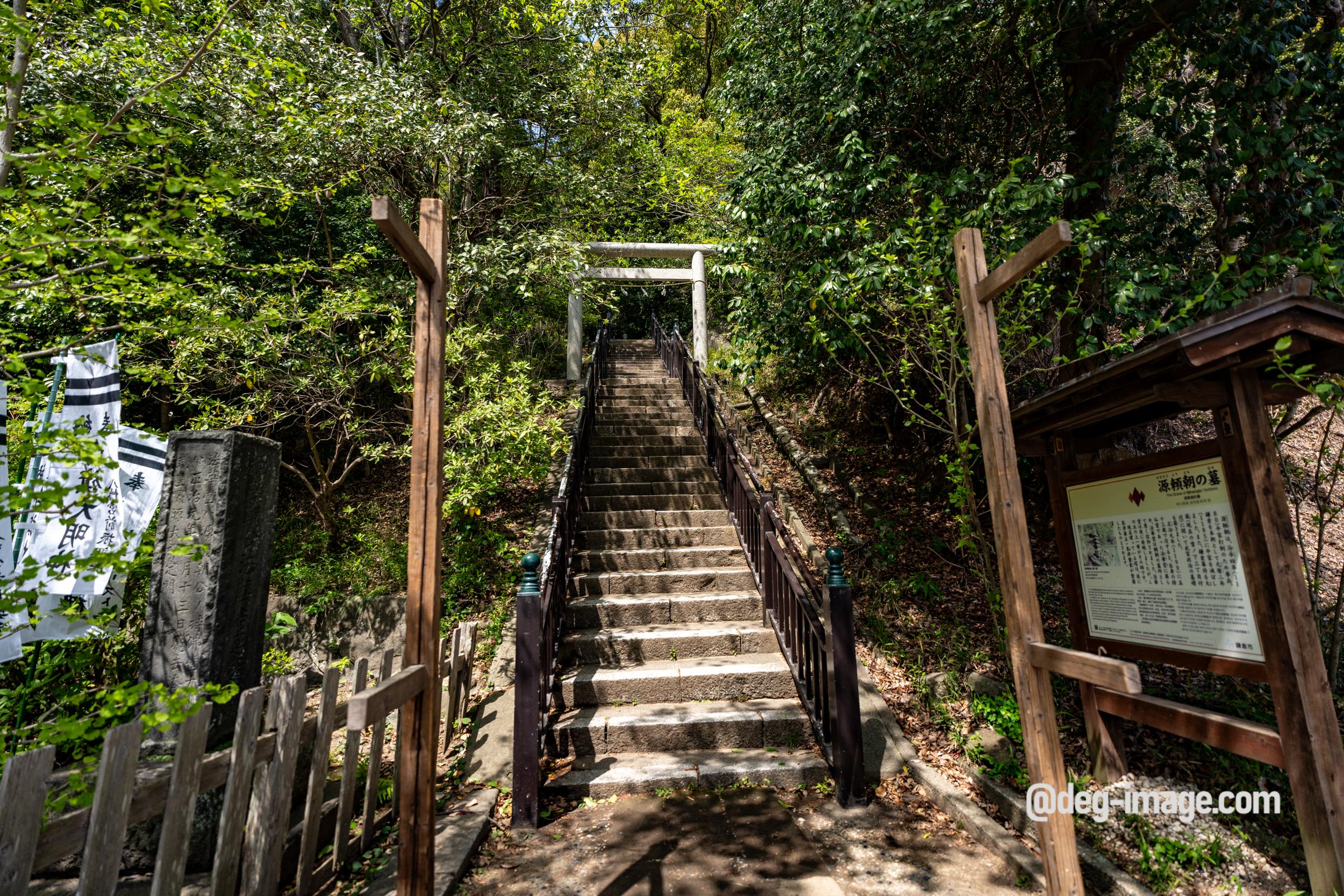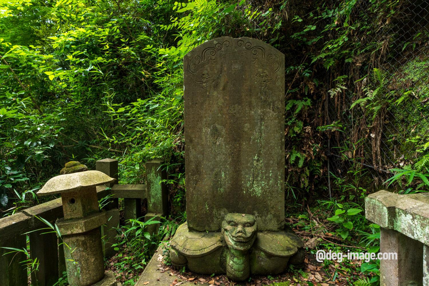 写真(下)奥に見える鳥居付近には2本の石段があり、毛利季光の墓・大江広元の墓・島津忠久の墓に通じています。また、鳥居の左側には三浦氏が供養されているやぐらがあります。