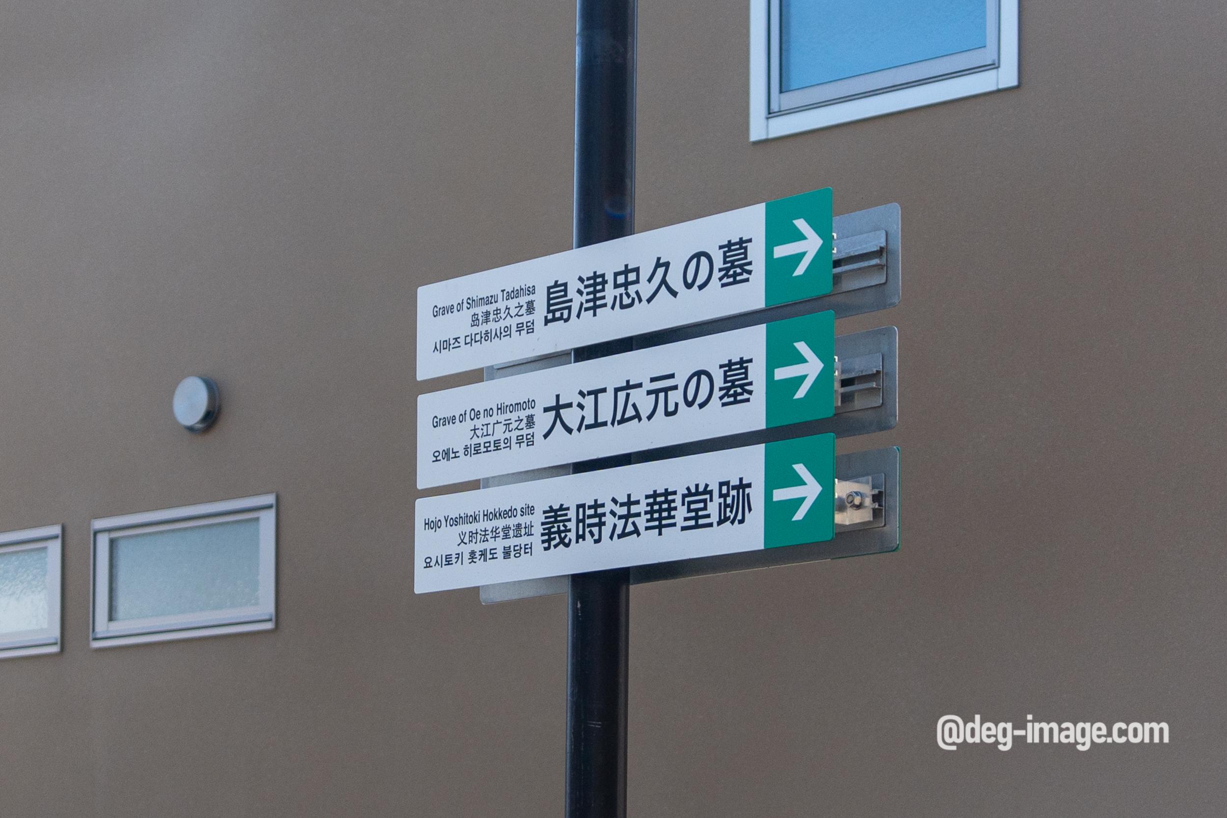 左の石段は大江広元と毛利季光の墓に、右の石段は島津忠久の墓につながっている。石段の中腹でそれぞれの石段を行き来できるが、墓のある石段頂上では左右の行き来はできません。