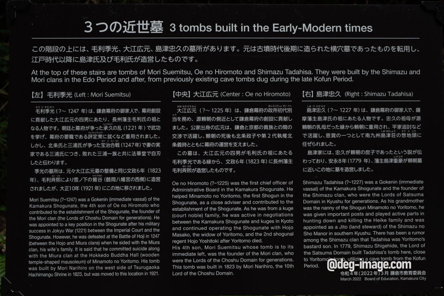 もともとそれぞれが供養されていたやぐらがあったが、江戸時代に有力大名だった島津氏と毛利氏は、墓として整備したものと伝わっています。