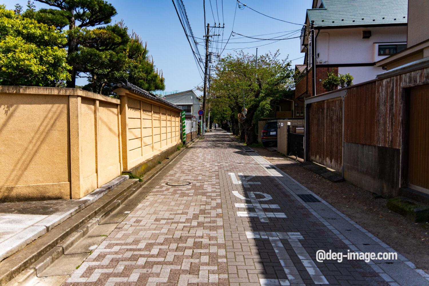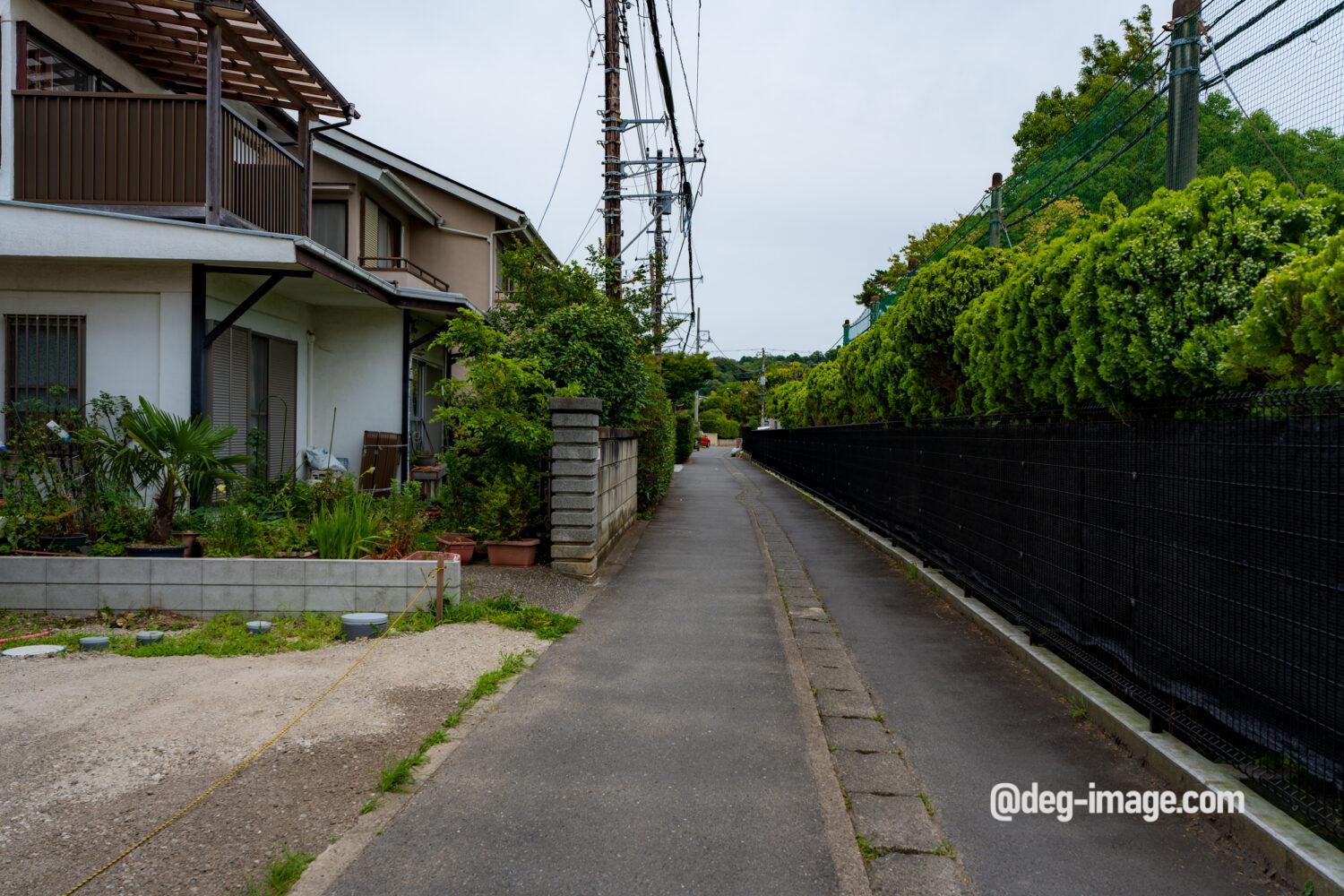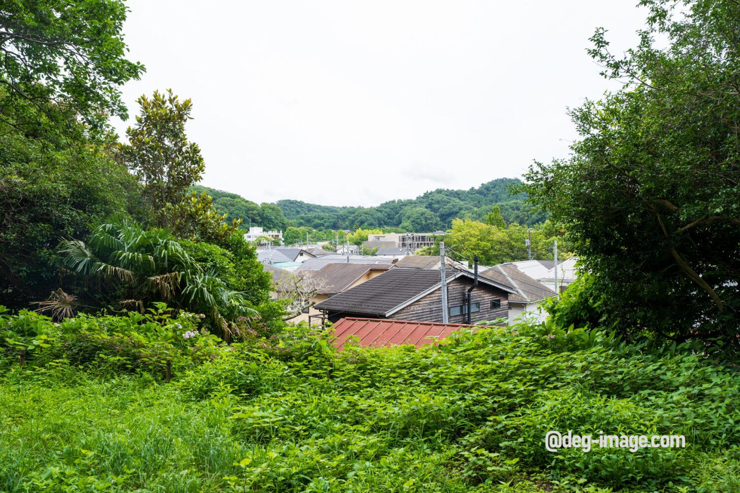 義時法華堂の急な階段を降り、住宅街を東に進む。