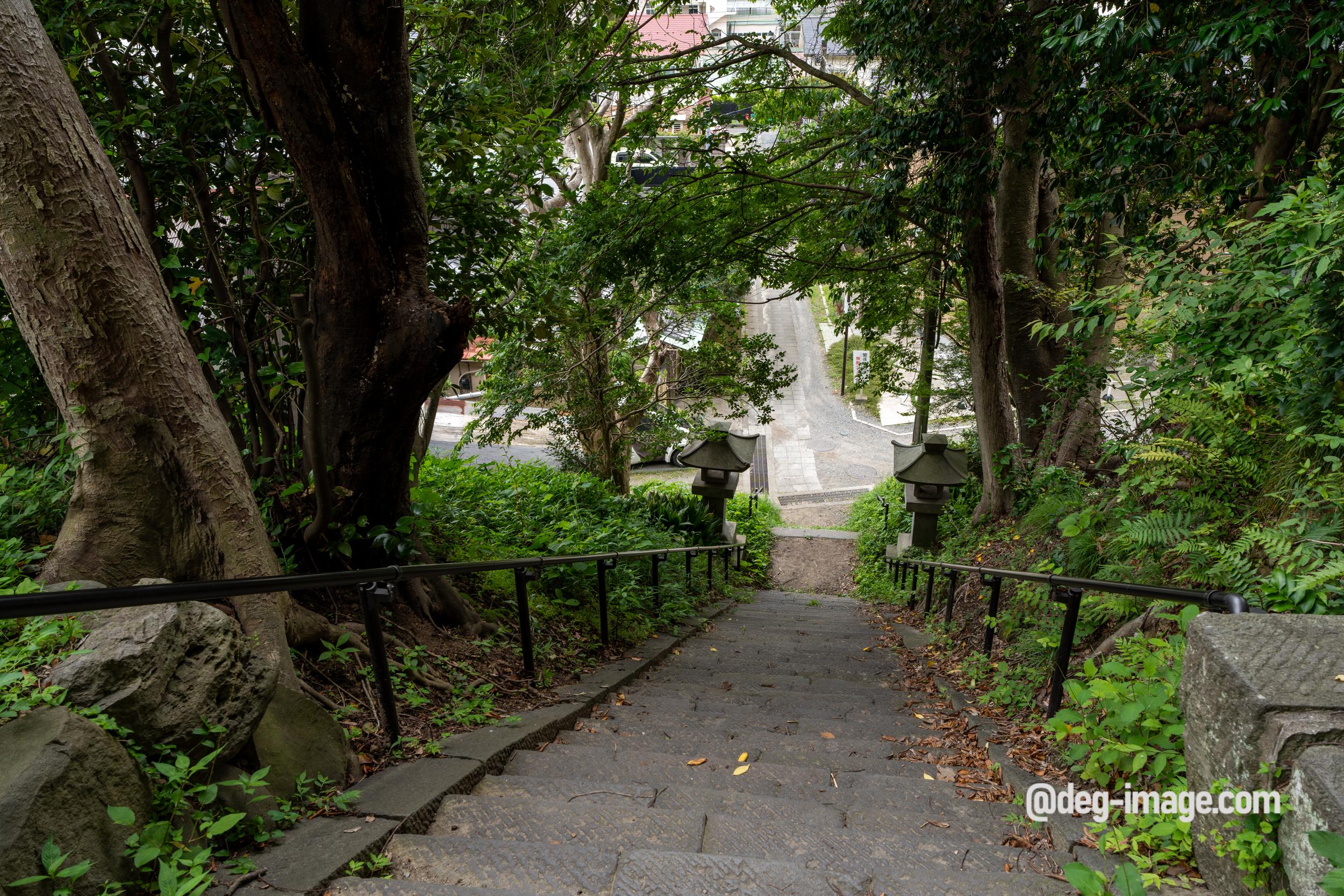 どちらの石段も一段の高さが高く急なので、手すりにしっかりつかまることをお勧めします。