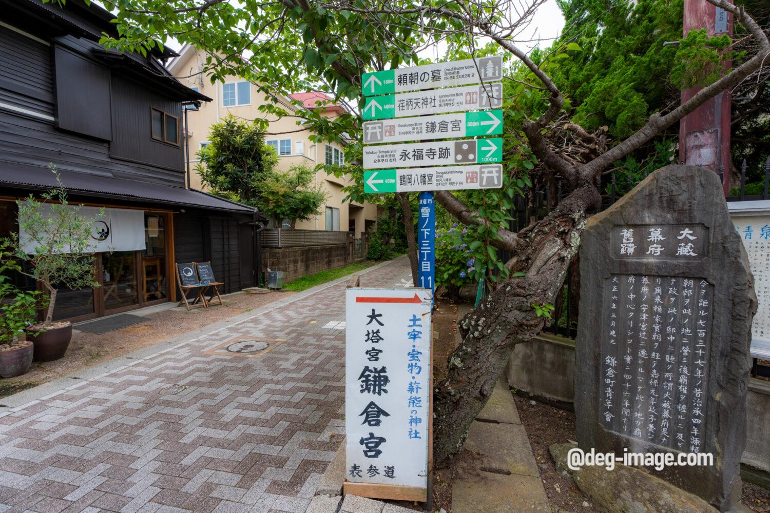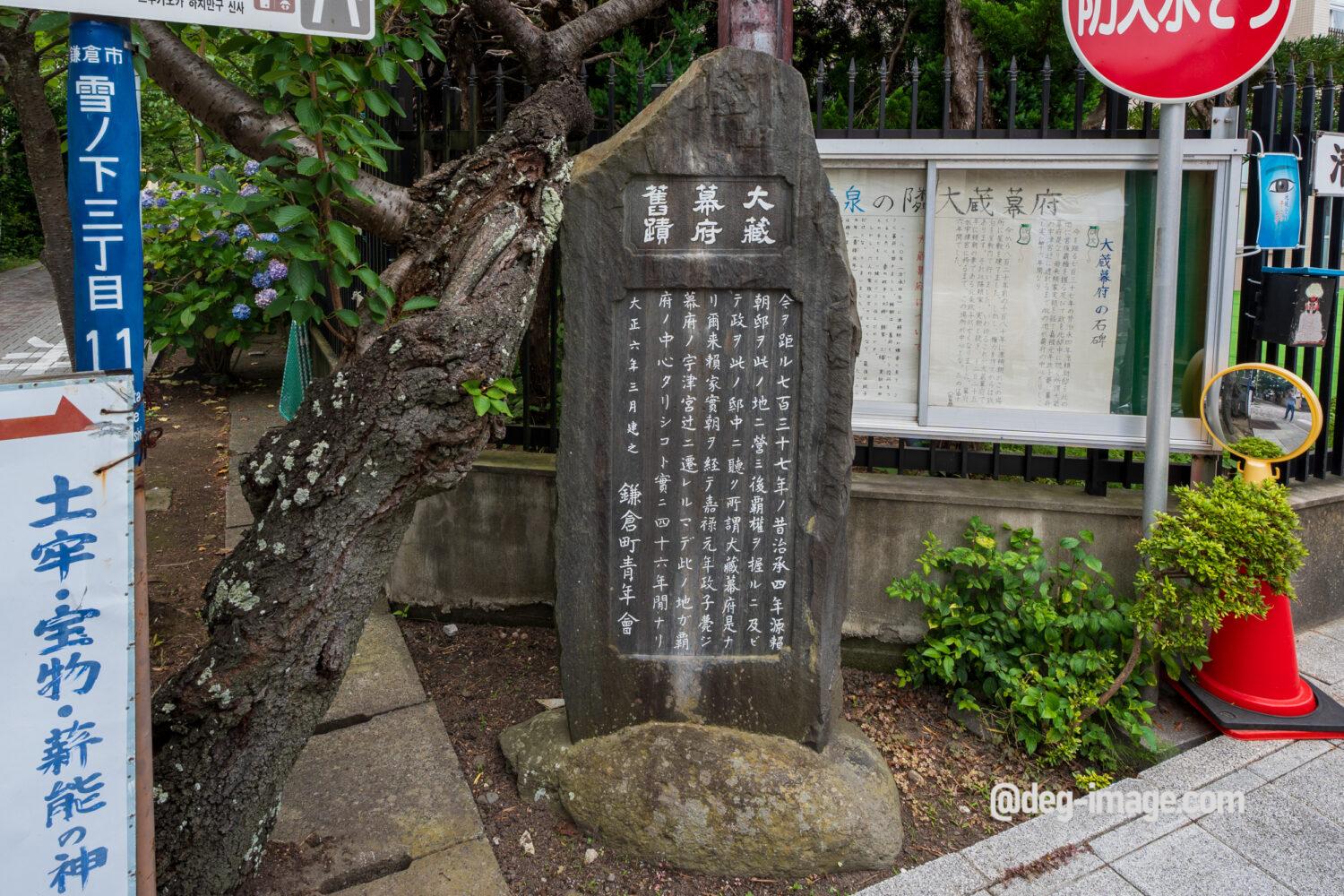 しばらく進むと大蔵(大倉)幕府跡の石碑があります。現在の感覚からすると、1180年、この地に源頼朝の居宅である御所が設置され、その後頼朝が征夷大将軍に任ぜられるなどして、徐々に御所に政庁としての機能が備わっていった、と推測されます。