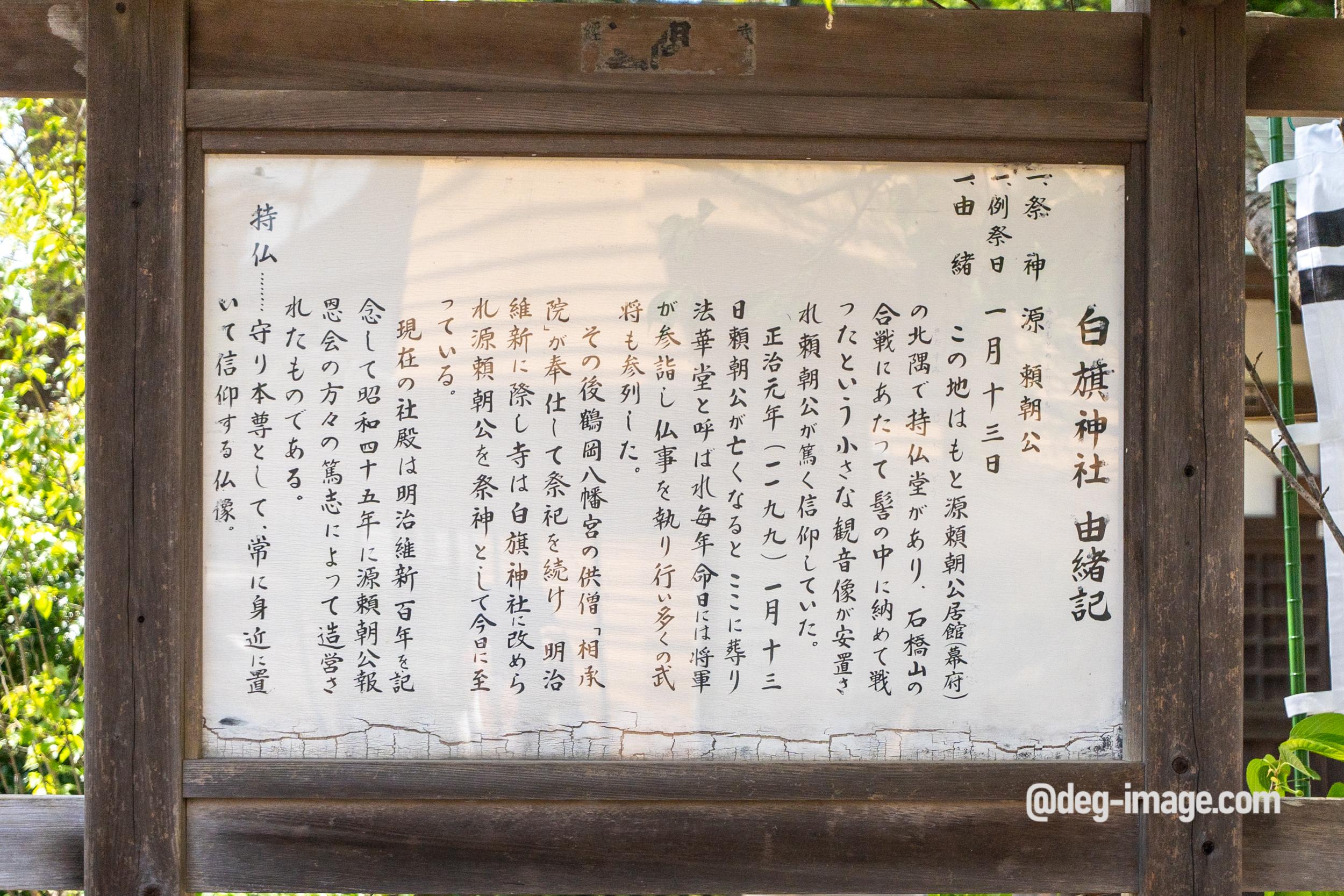 大倉御所の鬼門にあたるため、鬼門を守る神社として頼朝らに崇められたという。